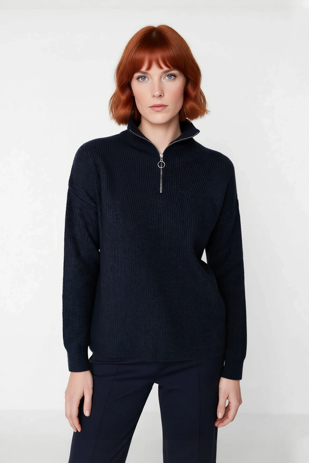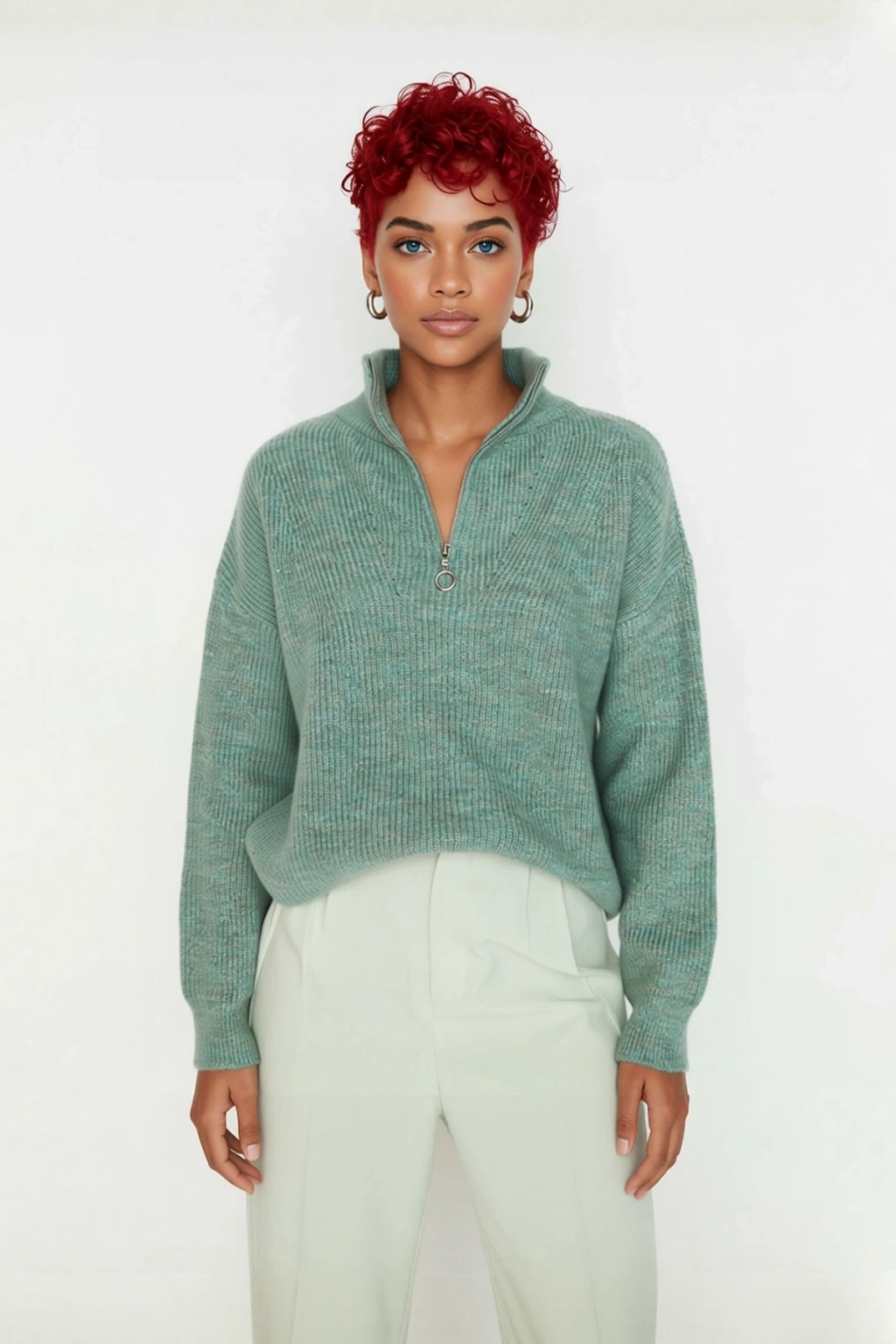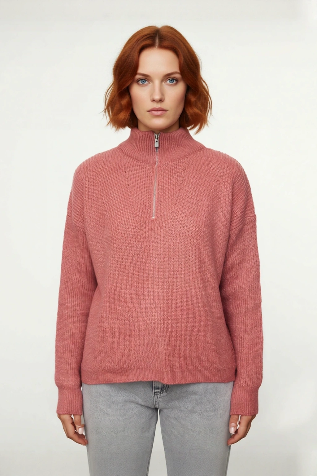 Dik yaka ve fermuar detayı, hem modern bir dokunuş katar hem de hava koşullarına göre yakanın ayarlanabilmesini sağlar. Düşük kol ve uzun kol tasarımı, rahat bir hareket alanı sunarken, selanik dokuma triko kumaşı ürüne karakteristik bir doku ve zengin bir görünüm kazandırır. Cepsiz yapısı sayesinde sade ve akıcı bir siluet sunar. Regular boyu, farklı alt giyim seçenekleriyle uyumlu bir görünüm sergiler. Yıkama talimatlarına uygun olarak makinede kolayca temizlenebilir, pratik ve uzun ömürlü bir kullanım vaat eder. Bu ürün, sürdürülebilirlik ilkeleri doğrultusunda üretilmiştir.