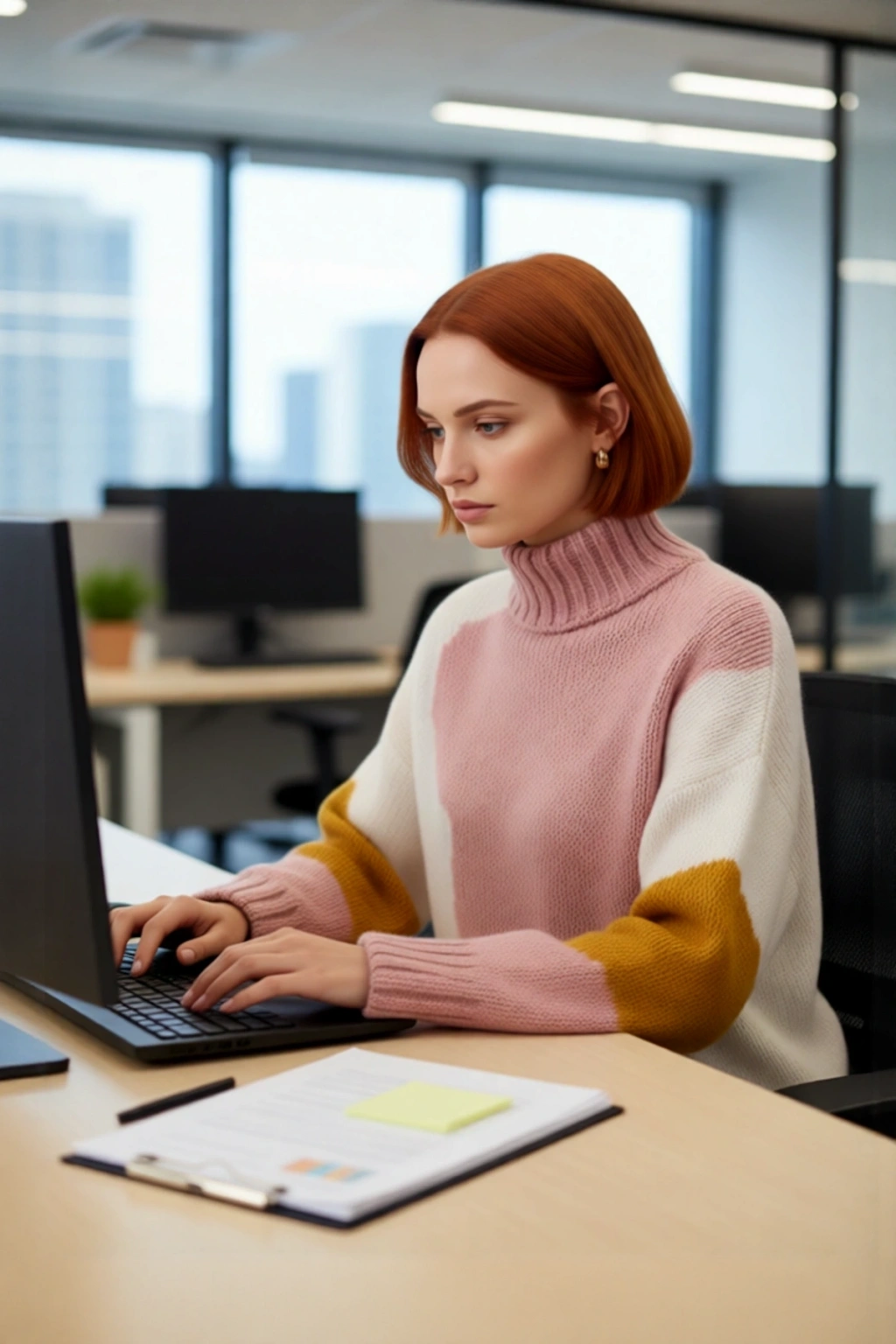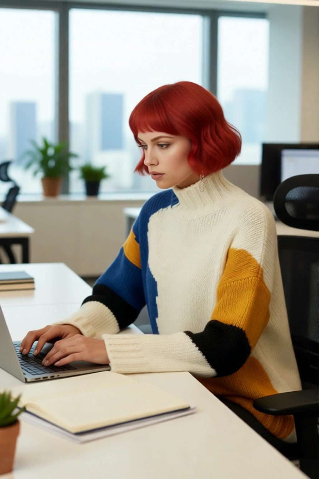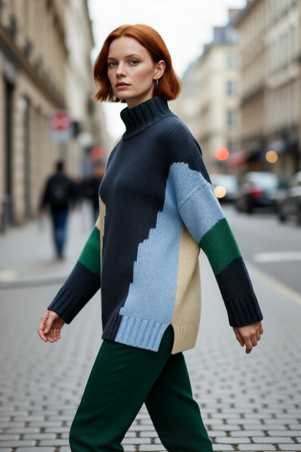 Bu kadın oversize triko kazak, kış aylarının soğuk yüzüne karşı mükemmel bir koruma sağlarken, stil sahibi görünümünüzden ödün vermez. Geniş ve rahat kalıbı sayesinde modern bir duruş sergilerken, dik yaka tasarımı boyun bölgenizi sıcacık tutar. Bej zemin üzerine yerleşen canlı yeşil, pembe ve siyah renk blokları, kazağa dinamik ve sanatsal bir hava katıyor. %75 akrilik, %22 polyester ve %3 elastan içeren materyal bileşimi, yumuşaklığı ve dayanıklılığı bir arada sunarak uzun ömürlü bir kullanım garantisi verir. Bu kazakla soğuk havayı unutup anın tadını çıkarın.