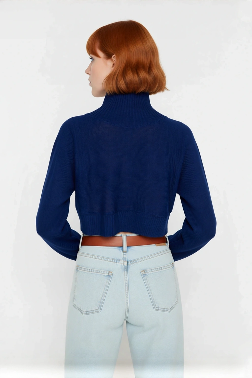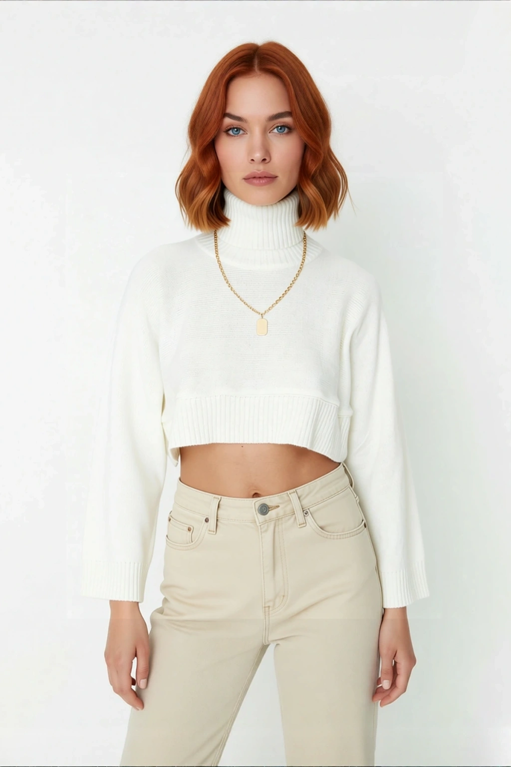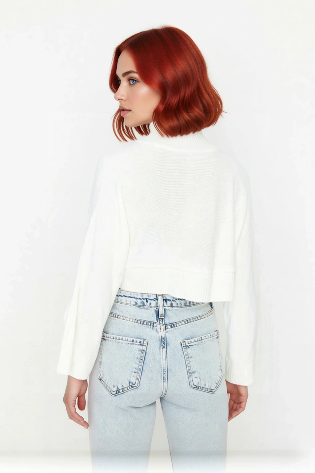 Dik yaka tasarımı, soğuk rüzgarlara karşı ekstra koruma sağlarken stilinize sofistike bir dokunuş ekler. Düşük kol tipi ve uzun kol boyu, rahat bir kullanım sunar ve modern bir siluet oluşturur. Triko kumaş tipi, hafif dokusu sayesinde nefes alabilir özelliktedir ve terletmeden vücut ısısını dengeler, bu da onu kış ve ilkbahar geçiş dönemleri için uygun kılar. Cepsiz tasarımı temiz ve düzenli bir görünüm sunarken, süper crop boyu ile yüksek bel jean veya pantolonlarla mükemmel bir uyum yakalar. %100 Akrilik bileşeni dayanıklılığı ve kolay bakımı garanti eder (T41 yıkama talimatı).