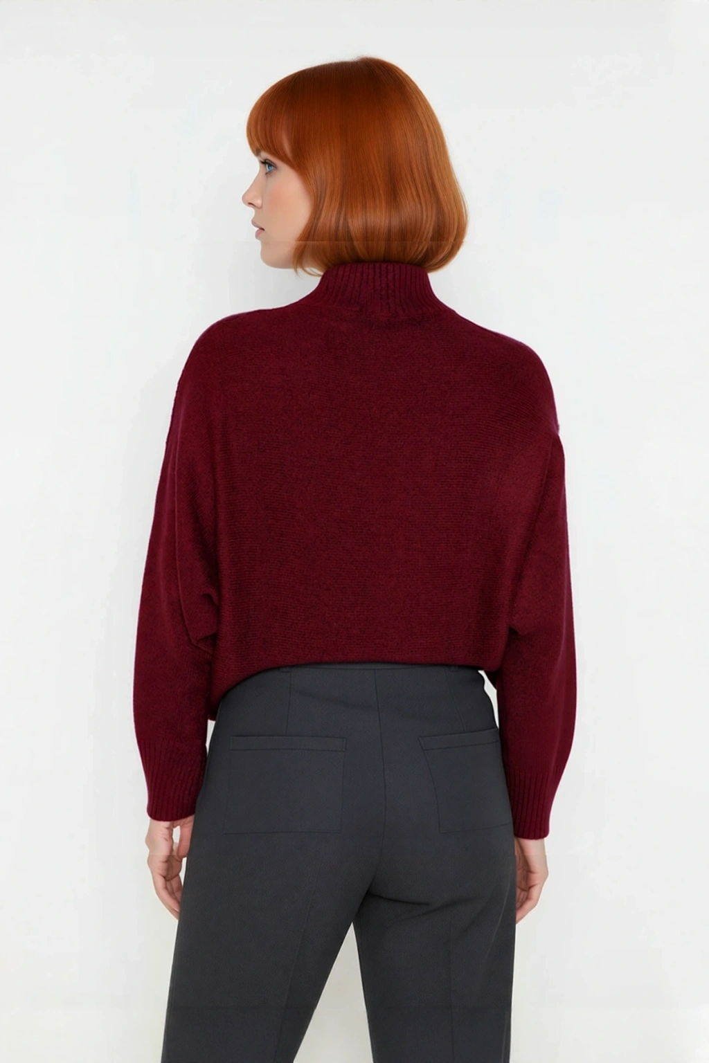 Ürün Özellikleri: Oversize kalıp, 75% Akrilik 25% Polyester materyal, düz desen, dik yaka, düşük kol, triko kumaş, gri renk.