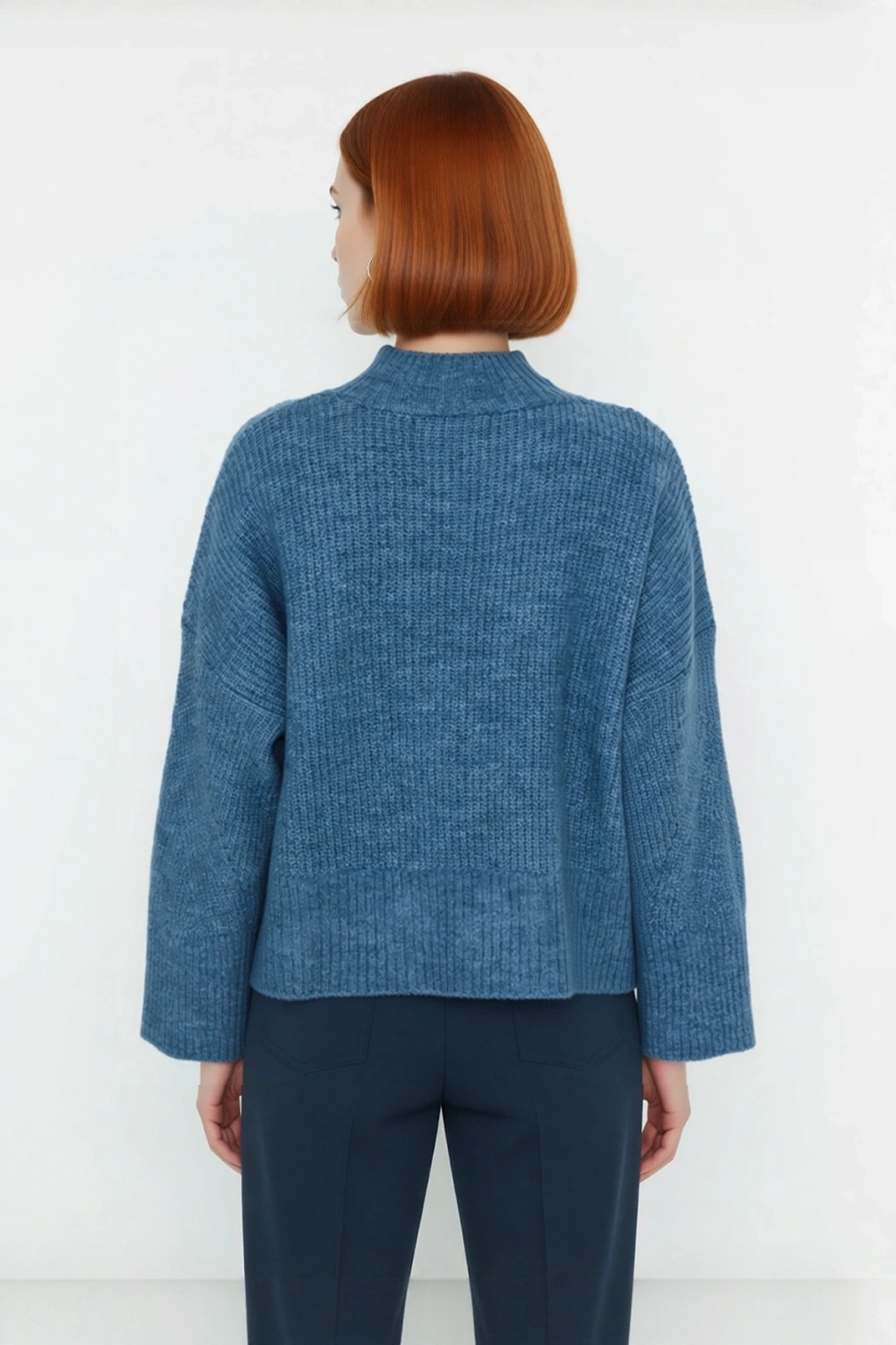Soğuk havalara karşı ekstra koruma sağlayan dik yaka detayı, şıklığınızdan ödün vermeden boynunuzu sıcacık tutar. Reglan kol tipi, omuzlarda doğal bir düşüşle modern bir hava katarken, uzun kol boyu tam kapama sunar ve soğuktan korunmanızı destekler. Selanik dokuma triko kumaşı, zengin bir doku hissi verirken, orta kalınlığı sayesinde hareket kısıtlamadan gün boyu konfor sunar. Cepsiz tasarımı sade ve akıcı bir görünüm sağlar. T41 yıkama talimatına uygunluğu ile makinede kolayca yıkanabilir, bu da bakımını son derece pratik hale getirir.