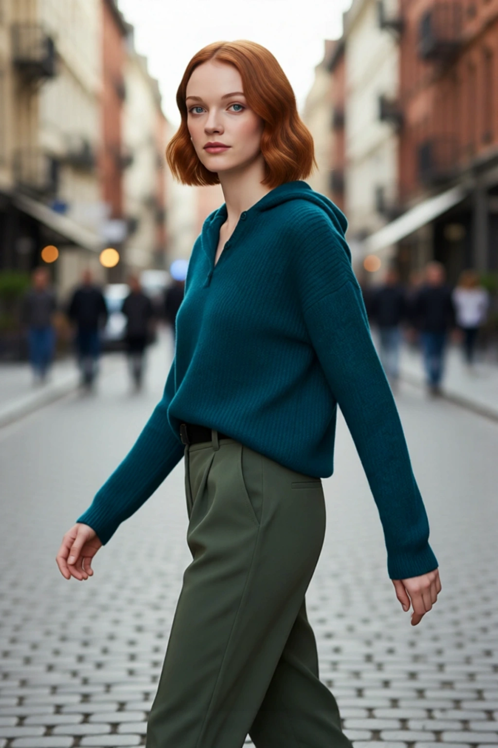 Bu kadın oversize kapüşonlu triko kazak, modern ve rahat bir silüet arayanların vazgeçilmezi olmaya aday. Geniş ve dökümlü oversize kalıbı sayesinde gün boyu hareket özgürlüğü sunarken, vücudu saran sıkı tasarımların aksine konforlu bir kullanım vaat eder. Yumuşak dokusuyla teninize nazikçe temas eden bu kazak, sizi soğuk havalarda sıcak tutacak %79 akrilik ve %21 polyester materyal bileşeniyle üretilmiştir. Düz deseni sayesinde sade ve zarif bir görünüm sunarken, canlı yeşil rengi kış kombinlerinize enerji katacak. Cepsiz ve baskısız tasarımıyla minimal şıklığı vurgular.