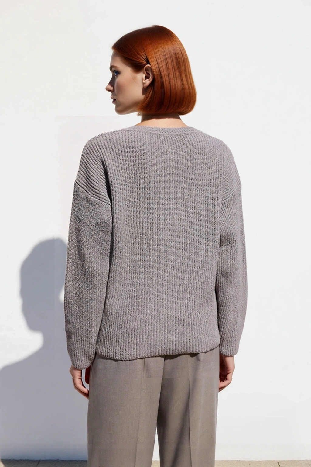 Her vücut tipine uygun oversize kesimi ile rahat bir kullanım sunan bu kazak, kot pantolonlar, taytlar veya eteklerle mükemmel bir uyum yakalar. Kış aylarında tek başına, sonbahar ve ilkbaharda ise katmanlı giyim için idealdir. Casual ve günlük ortamlar için vazgeçilmez bir parça olup, soğuk havalarda sıcak tutarken şıklığınızdan ödün vermemenizi sağlar.