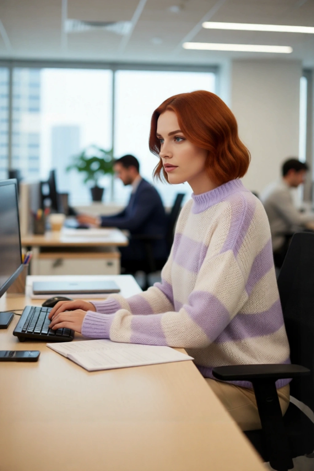 Bu Kadın Oversize Geniş Kalıp İnce Çizgili Triko Bisiklet Yaka Düşük Kol Kazak Kış Sezonu Casual Giyim, modern stil ile üstün konforu bir araya getiriyor. Rahat oversize kalıbı, geniş kesimiyle hareket özgürlüğü sunarken, ince triko kumaşı kış aylarında bile hafif bir sıcaklık sağlar. Ekru zemin üzerine işlenmiş şık çizgili deseni, lila tonlarıyla dinamik bir görünüm yaratırken, basic silueti sayesinde her kombinle uyum sağlar. Cool ve comfort arayanlar için ideal bir tercihtir. Crop boyu ise genç ve modern bir duruş kazandırır.