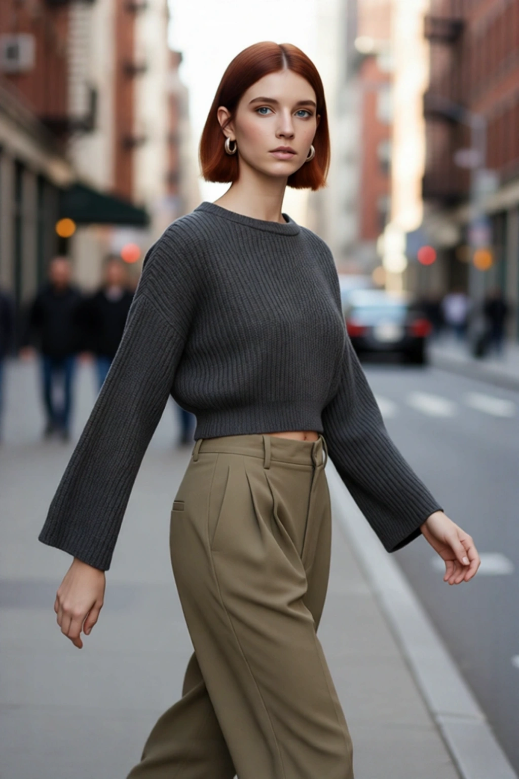 Bu şık Kadın oversize gri triko kazak, geniş ve rahat kalıbı ile modern bir siluet sunarken, süper crop kesimi dinamik ve genç bir tarz yaratır. Yüksek kaliteli %100 akrilik materyali sayesinde soğuk kış aylarında bile üstün bir sıcaklık ve konfor sağlar. Yumuşacık dokusu cilde narin bir his verirken, selanik dokuma tipi kazağa zengin ve belirgin bir tekstür katar. Baskısız düz deseni, sade ve minimalist bir şıklık arayanlar için mükemmel bir seçimdir. Bu gri kazak, gardırobunuzdaki birçok farklı renk ve stile sahip parça ile kolayca uyum sağlar.
