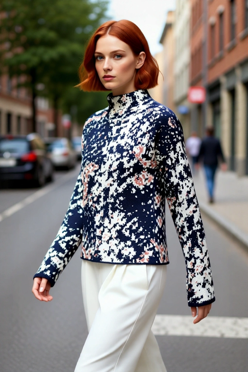 Kadın gardırobunun kış aylarındaki vazgeçilmezi olacak bu oversize kalıp triko kazak, modern ve rahat bir duruş sergiler. Dik yaka tasarımıyla soğuklara meydan okurken, %87 Akrilik ve %13 Polyester materyal bileşimi sayesinde cildinize yumuşak ve sıcak bir temas sunar. Canlı hayvan deseni, lacivert, beyaz ve toprak tonlarının birleşimiyle enerjik ve stil sahibi bir görünüm yaratır. Bu kazak, şıklığı ve konforu bir arada arayan kadınlar için ideal bir seçim olup, günlük kombinlerinize kolayca adapte olur. Cepsiz yapısıyla sade ve fonksiyonel bir kullanım sunar.