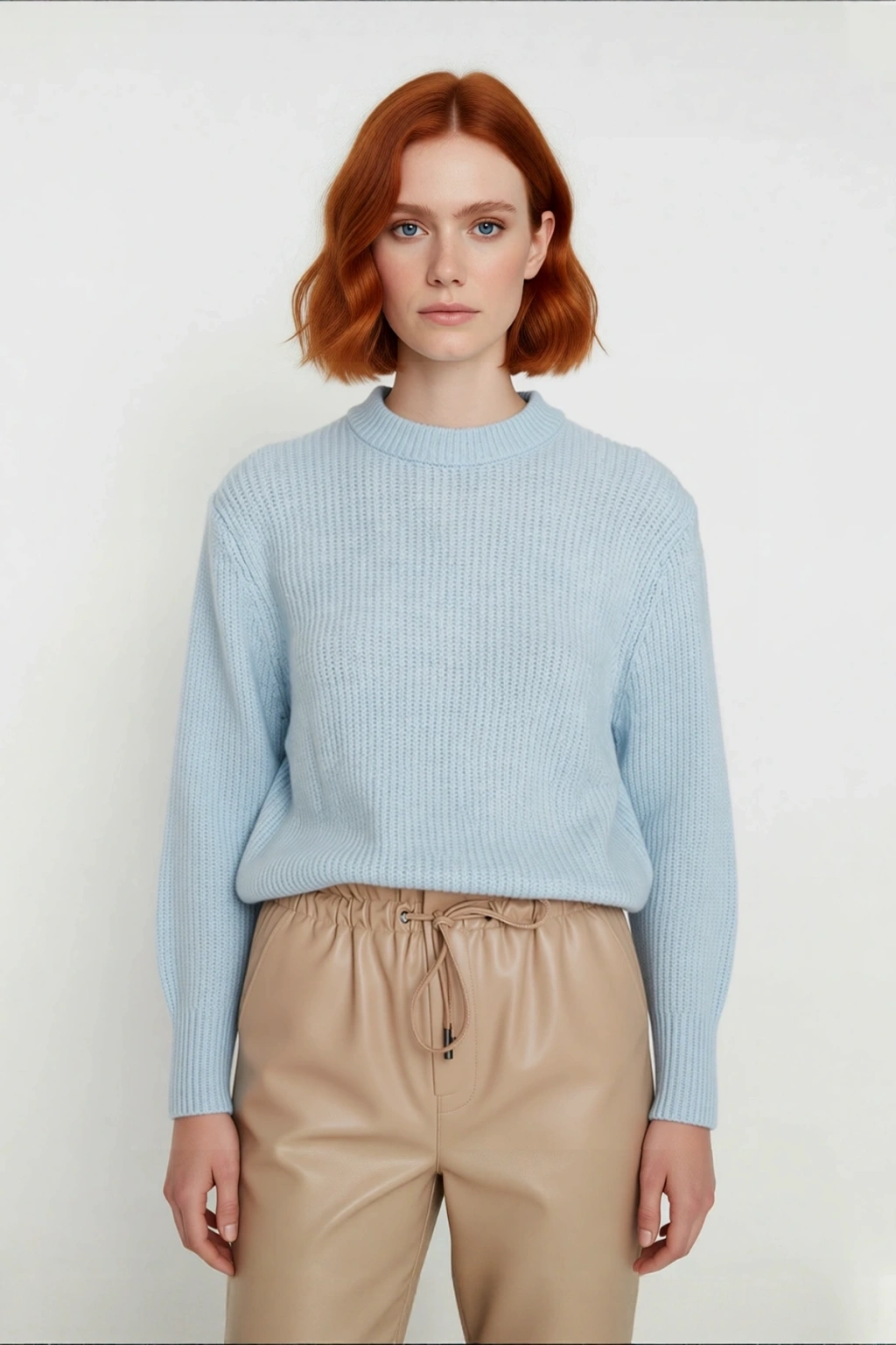 Bisiklet yaka tasarımı, klasik ve zamansız bir dokunuş katarken, düşük kol yapısı modern ve rahat bir siluet oluşturur. Uzun kol boyu, soğuk havalarda ekstra koruma sağlarken, triko kumaşın selanik dokuma özelliği hava geçirgenliği sunar. Cepsiz tasarımı sade ve akıcı bir görünüm korurken, orta kalınlıktaki yapısı hem hafif hem de ısıtıcıdır. Bu kazak, Cool & Comfort persona tanımına uygun olarak hem şıklığı hem de konforu bir arada sunar. Makinede yıkanabilir özelliği (T41 yıkama talimatı) sayesinde bakımı oldukça pratiktir ve uzun süre formunu korur.