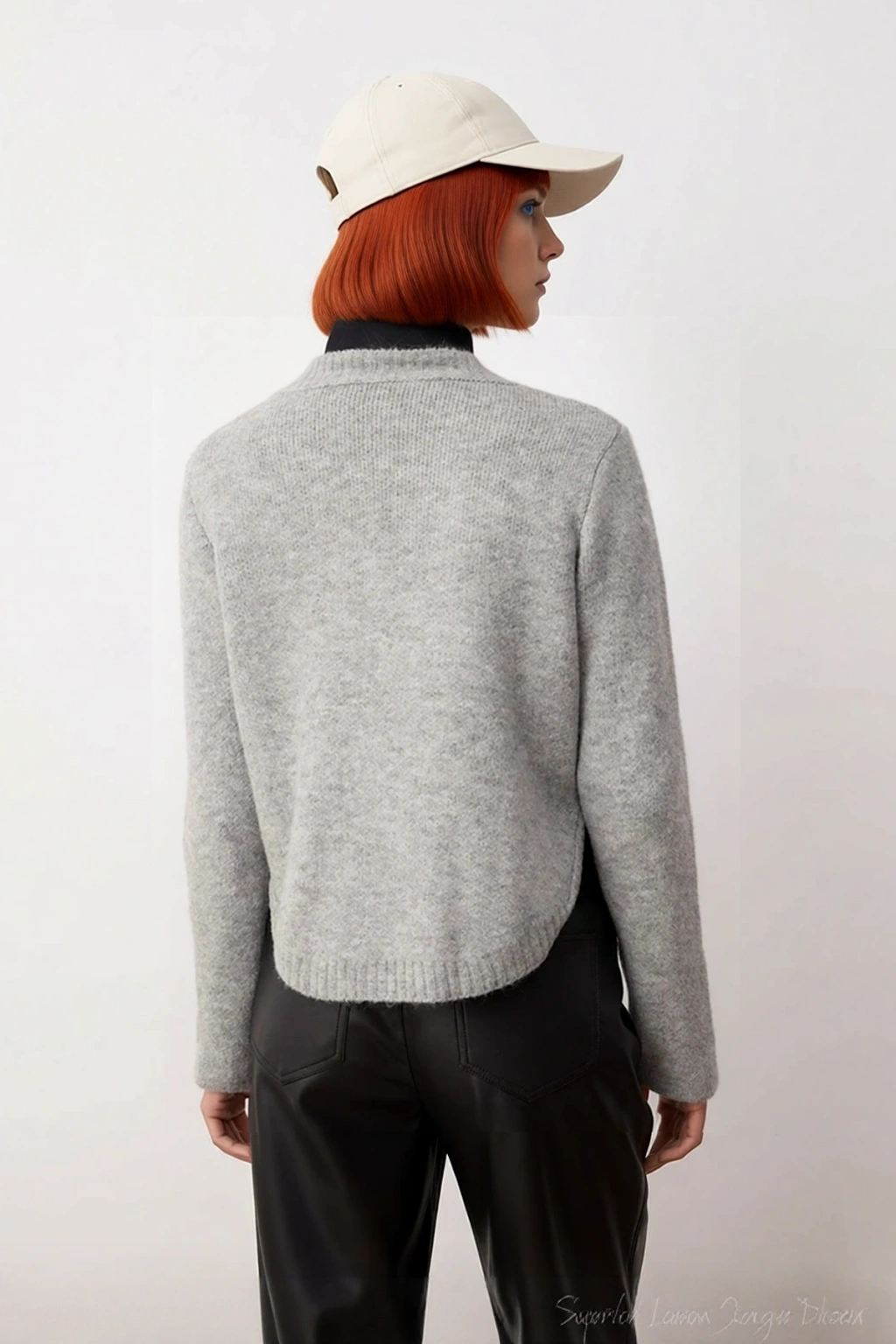 Ürün Özellikleri: Oversize kalıp, 75% akrilik 25% polyester materyal, düz desen, bisiklet yaka, standart kol, triko kumaş, gri renk.