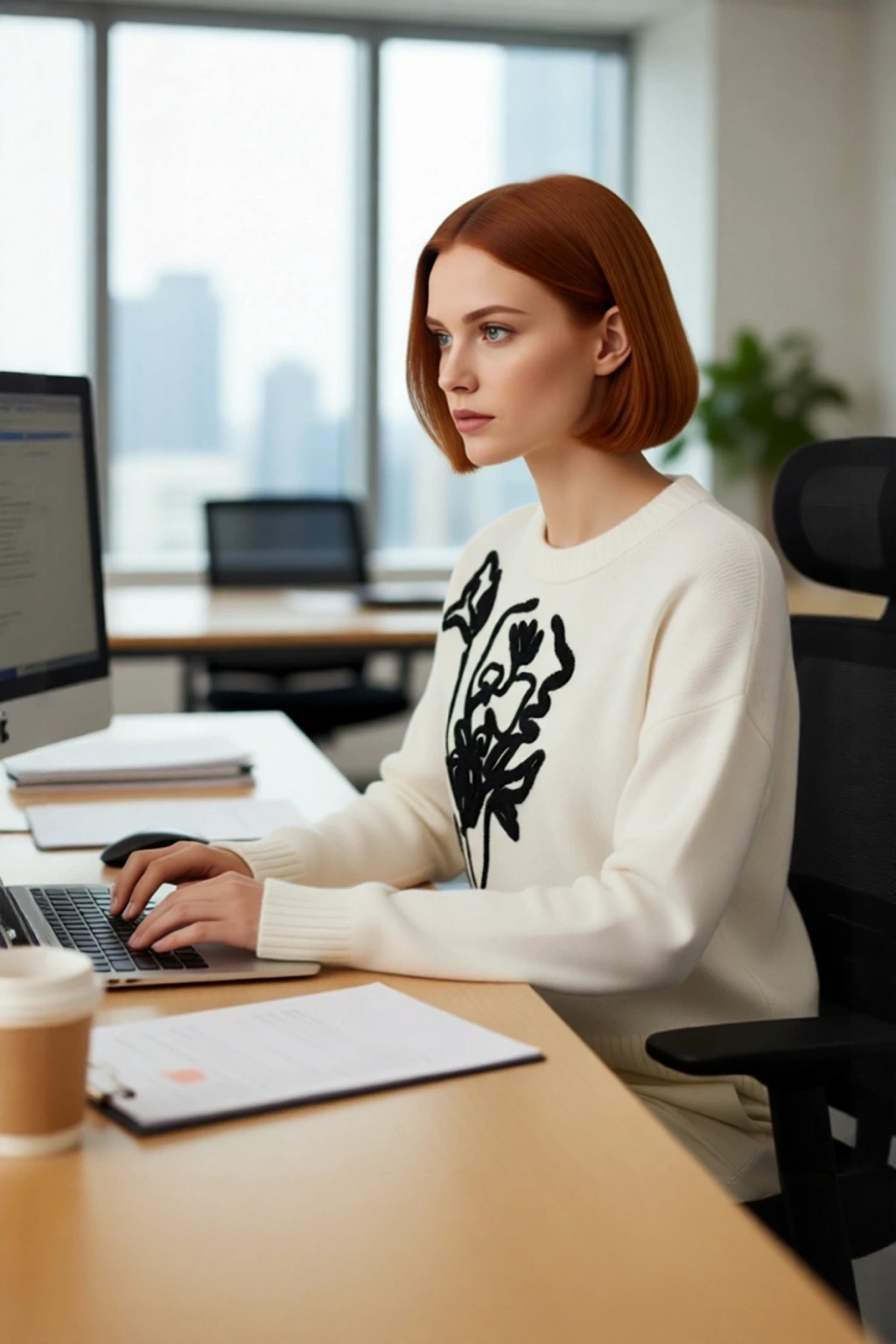 Bu şık kadın triko kazak, oversize kalıbı ile modern ve rahat bir siluet sunarak gün boyu hareket özgürlüğü sağlar. %75 akrilik ve %25 polyester materyal bileşimi sayesinde soğuk kış günlerinde sizi sıcacık tutarken, yumuşak dokusuyla cildinize narin bir temas sunar. Ön kısmındaki nakışlı ve işlemeli desen, ekru rengin sade zarafetini hareketlendirerek ürüne özgün, sanatsal bir karakter katar. Basic silüeti ve casual/günlük ortamlara uygun tasarımıyla gardırobunuzun en gözde ve vazgeçilmez parçalarından biri olmaya adaydır. Cool & Comfort persona anlayışına hitap eden bu kazak, stil sahibi görünümü rahatlıkla bir araya getirir.