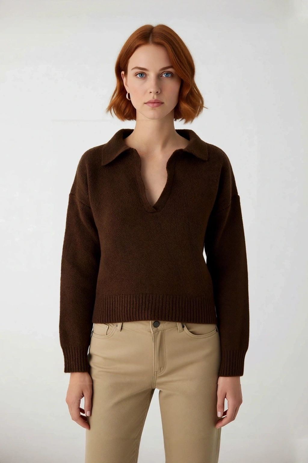 Ürün Özellikleri: Oversize kalıp, %69 akrilik %31 polyester materyal, düz desen, polo yaka, düşük kol, triko kumaş, haki renk, orta kalınlık, regular boy.