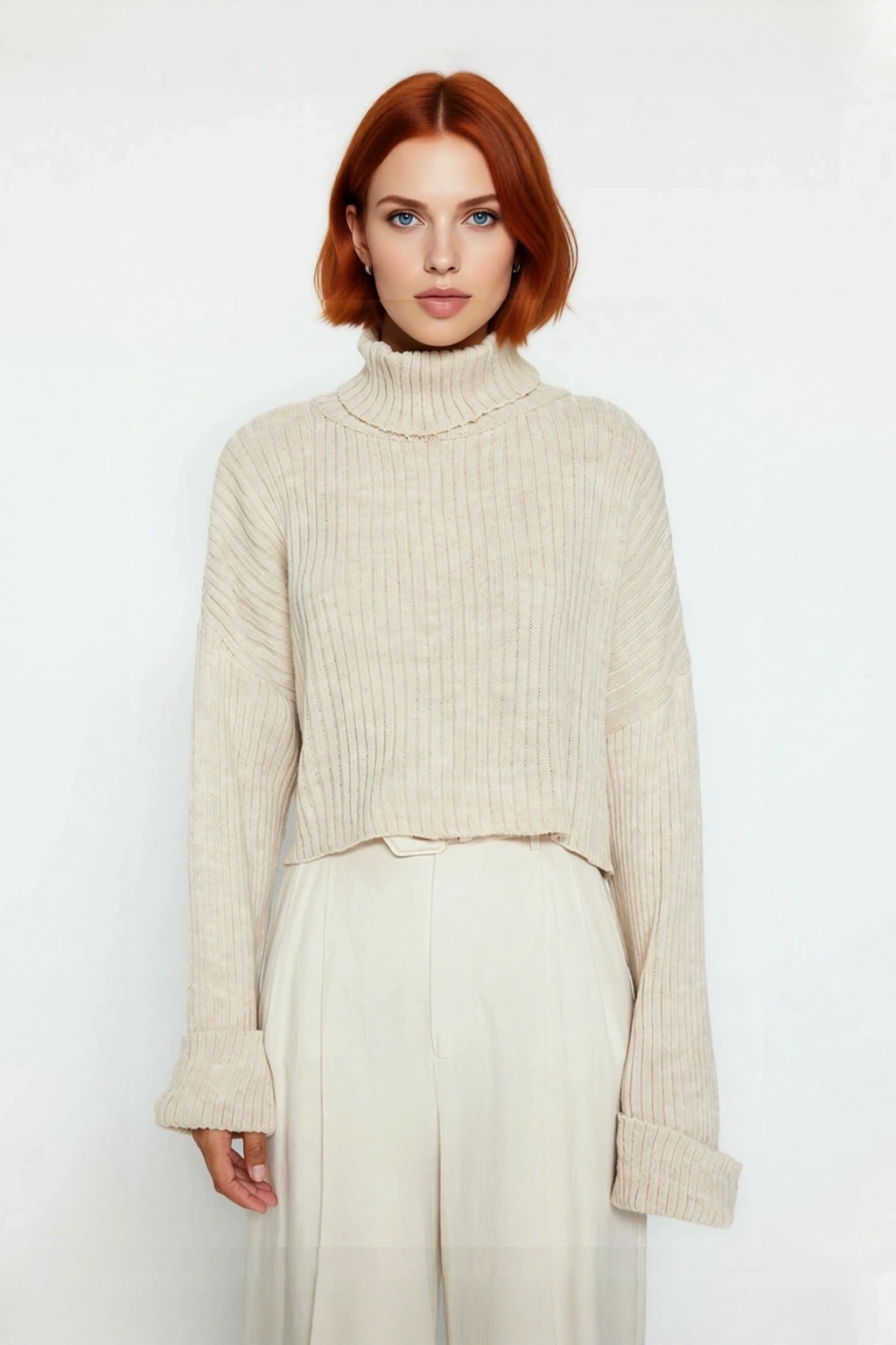 Bu oversize ve süper crop kazak, farklı vücut tiplerine modern bir dokunuş katarak stil sahibi bir görünüm yaratır. Yüksek bel pantolonlar, jeanler veya eteklerle harika kombinler oluşturarak günlük ve casual ortamlarda şıklığınızı tamamlar. Kış sezonu için özel olarak tasarlanan bu parça, katmanlı giyimde de rahatça kullanılabilir. Soğuk günlerde stilinizden ödün vermeden sıcak kalmak isteyenler için vazgeçilmez bir seçenektir.