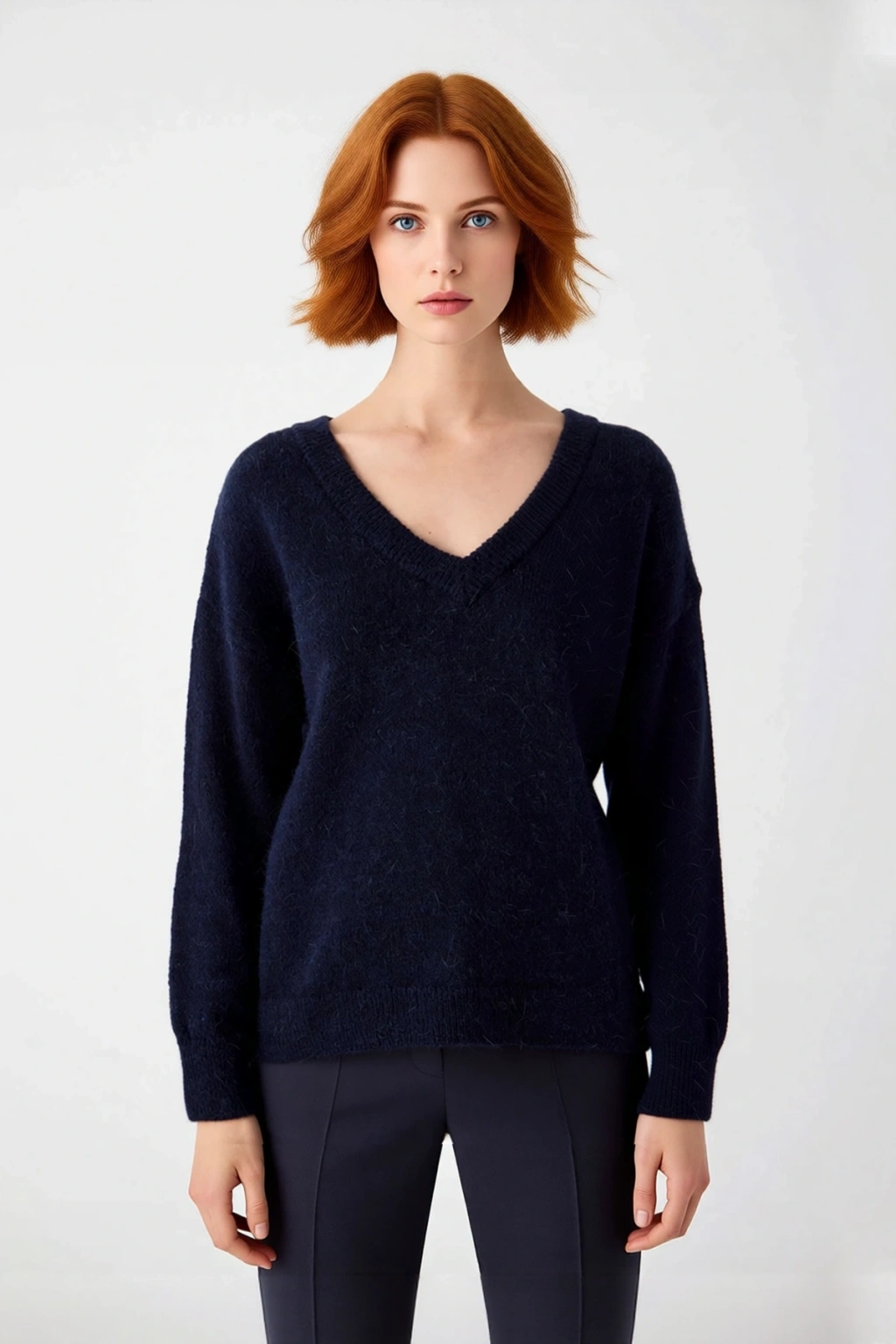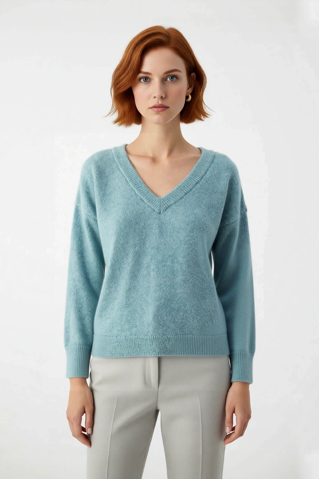 V Yaka tasarımı klasik bir zarafet katarken, düşük kol kesimi ve uzun kol boyu rahat bir kullanım deneyimi sunar. Triko kumaş tipi, selanik dokuma özelliğiyle hem dayanıklı hem de nefes alabilen bir yapıya sahiptir. Orta kalınlığı sayesinde kış aylarında sizi sıcak tutarken, basic silueti günlük kombinlerinize kolayca adapte olur. Makinede yıkanabilir özelliği ile bakımı oldukça kolaydır, böylece zamanınız size kalır. Yüksek kaliteli materyal bileşimi, uzun süreli kullanımlarda bile formunu korumasını sağlar.