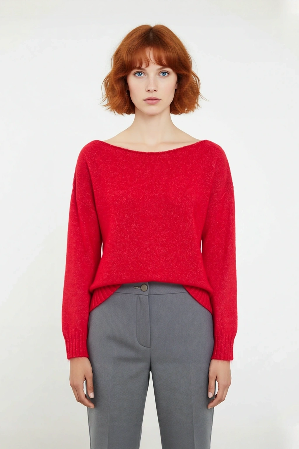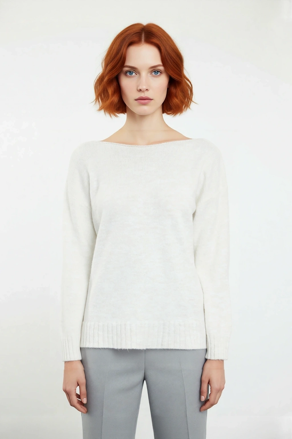Zarif kayık yaka tasarımı, boyun ve köprücük kemiği hattını nazikçe ortaya çıkararak sofistike bir dokunuş ekler. Standart kol tipi ve uzun kol boyu, serin havalarda ekstra koruma sağlarken, rahat bir oturuş sunar. İnce triko kumaş dokusu, hafifliğiyle öne çıkar ve hava akışına izin vererek gün boyu ferahlık sağlar. Bu özellik, kazakta ağırlık hissi olmadan sıcak kalmayı mümkün kılar. Tek plaka dokuma tekniği, ürünün formunu ve dayanıklılığını artırırken, uzun süreli kullanımlarda bile kalitesini korumasına yardımcı olur. Makinede yıkanabilir olması, pratik kullanım ve bakım kolaylığı sunar.