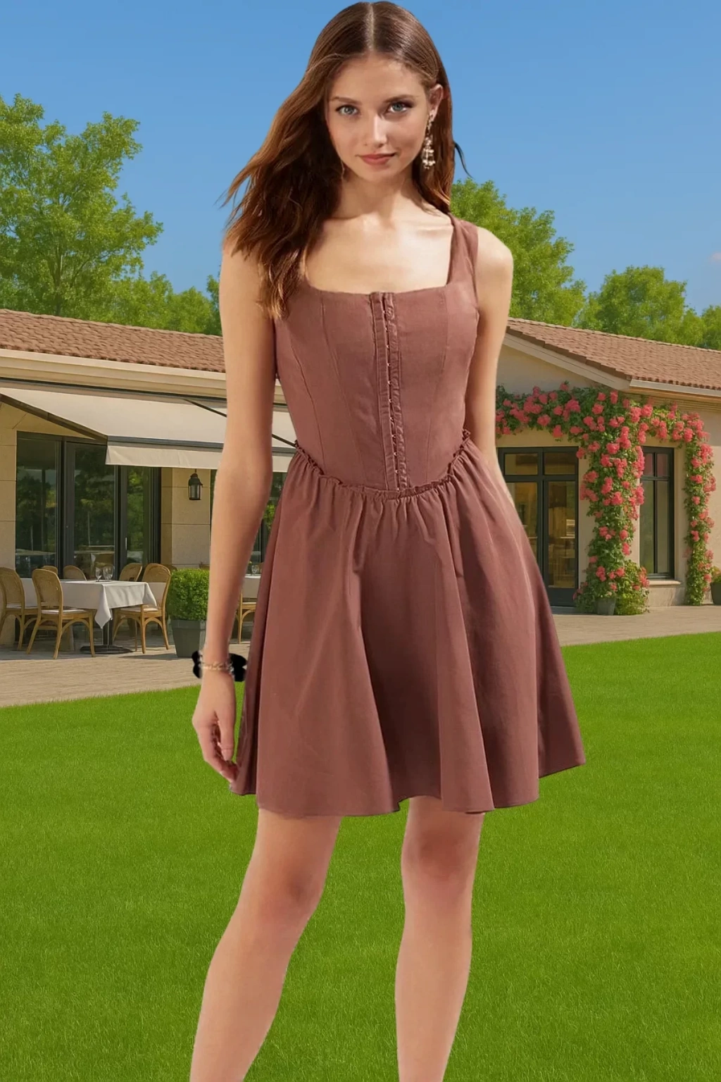 Bu nefes kesici kısa A-kesim elbise ile yazın en özel günlerinde göz alıcı olun! Yüksek kaliteli pamuklu poplin kumaştan üretilen elbise, hem şık hem de son derece rahat bir deneyim sunar. A-line kesimiyle vücudunuza kusursuz bir şekilde otururken, kare yakası ve kolsuz tasarımıyla feminen ve modern bir tarz yaratır. Agraflı detay ise elbiseye benzersiz bir dokunuş katar.