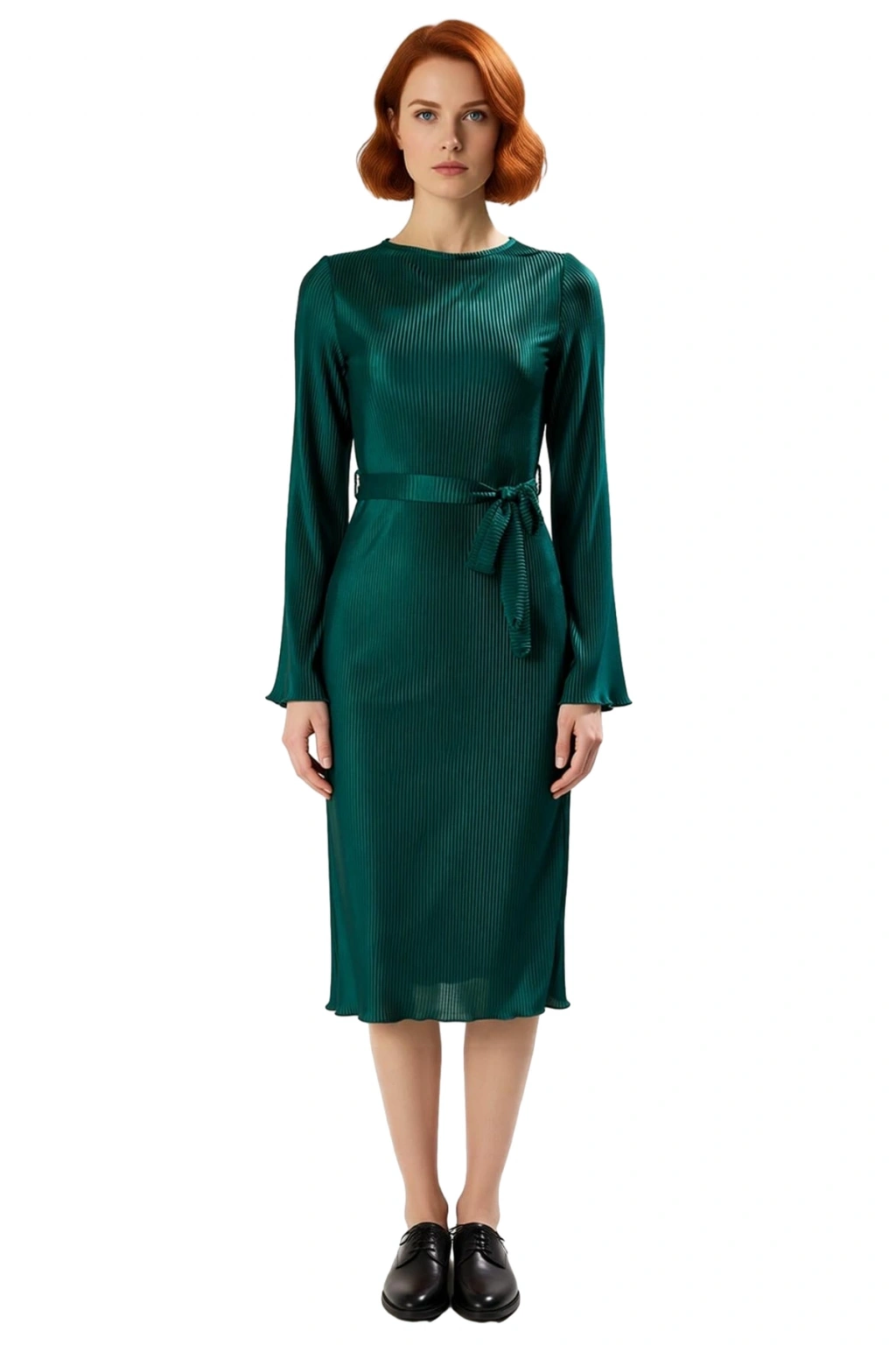 Kayık yaka detayı, klasik ve modern çizgileri birleştirerek omuzları narin bir şekilde ortaya çıkarır. Uzun ve standart kol yapısı, soğuk kış günlerinde bile sıcak kalmanızı sağlar. Örme kumaş tipi, yumuşak dokusuyla cildinize nazik bir temas sunarken, astarlı yapısı iç gösterme endişesini ortadan kaldırır. Pilise dokusu, elbiseye derinlik ve hareket katarken, her adımda şıklığınızı ön plana çıkarır.