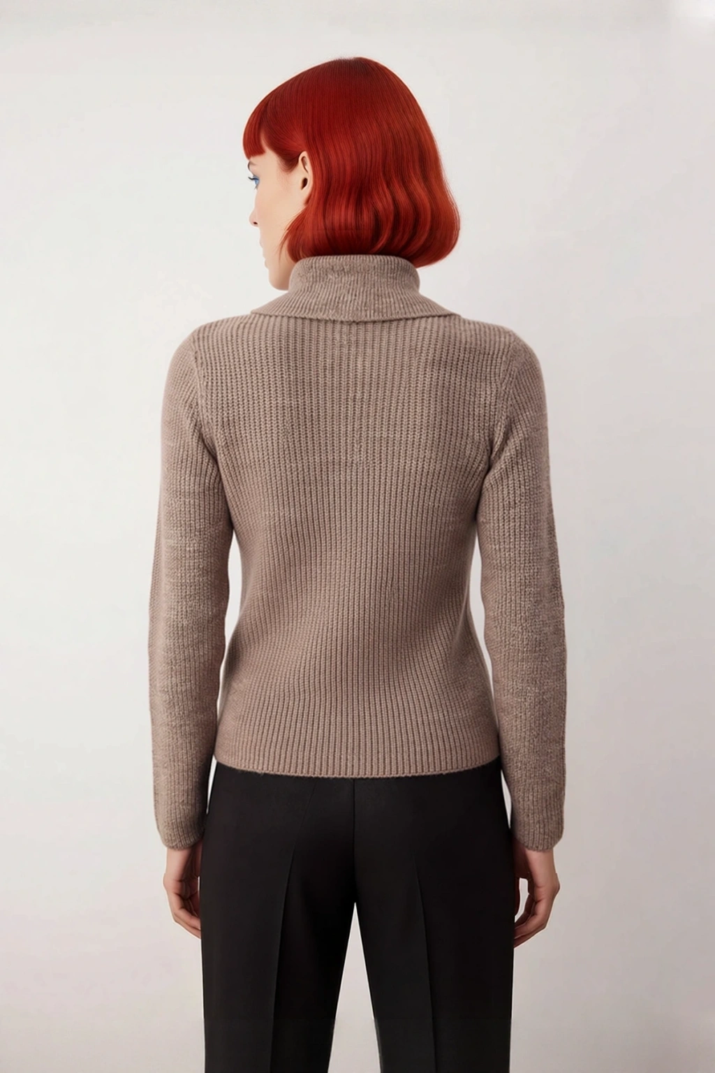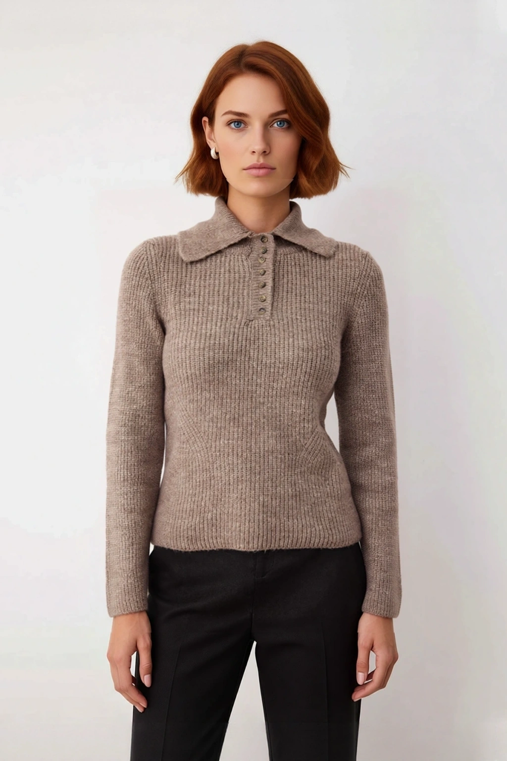 Ürün Özellikleri: Regular kalıp, 74% Akrilik 26% Polyester materyal, düz desen, polo yaka, standart kol, triko kumaş, kahverengi renk.