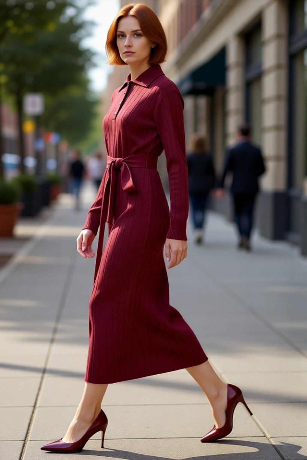Ürün Özellikleri: Shift kalıp, akrilik materyal, düz desen, polo yaka, standart kol, triko kumaş, bordo renk.