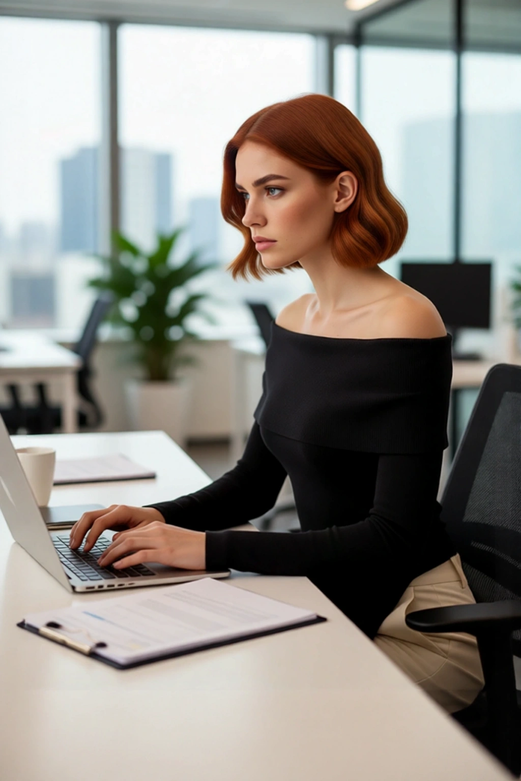Ürün Özellikleri: Fitted kalıp, viskoz polyester poliamid materyal, düz desen, carmen yaka, standart kol, triko kumaş, ekru renk.