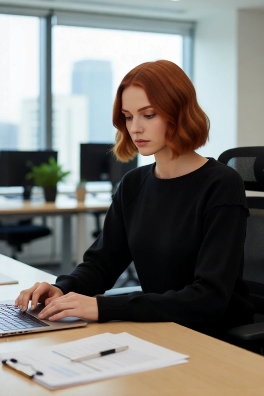 Ürün Özellikleri: Regular kalıp, viskoz polyester poliamid materyal, düz desen, bisiklet yaka, standart kol, triko kumaş, siyah renk.