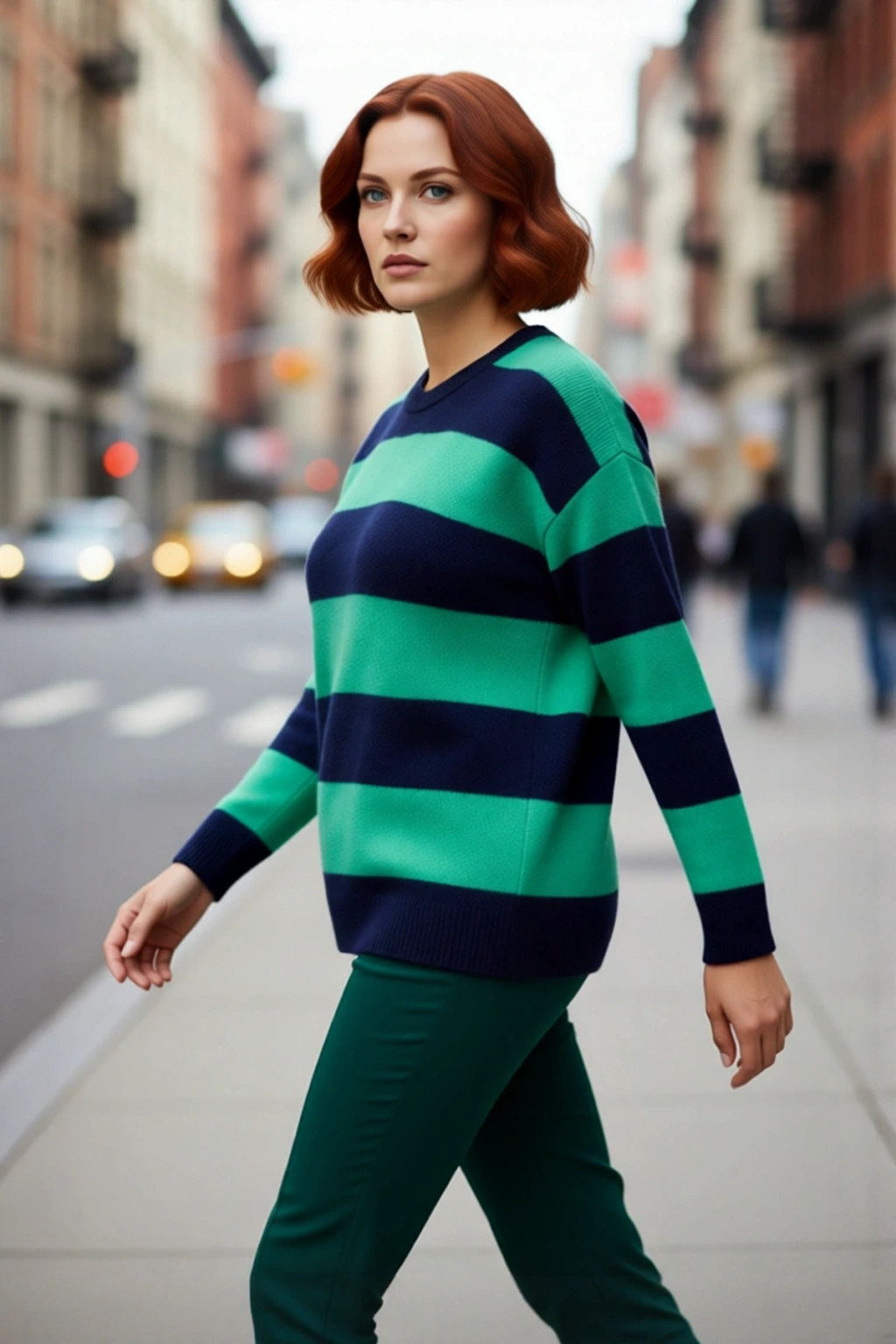 Soğuk hava şartlarında şıklığınızdan ödün vermek istemeyen kadınlar için tasarlanan bu rahat kesim triko kazak, konforu ve modernliği bir araya getiriyor. Regular kalıbı, vücuda tam oturmayan ancak salaş da olmayan ideal bir denge sunarak gün boyu hareket özgürlüğü sağlar. %80 akrilik ve %20 polyester materyal bileşimi sayesinde cildinize nazik bir dokunuş hissi verirken, aynı zamanda etkili bir sıcaklık yalıtımı sunar. Kırmızı ve pembe tonlarındaki göz alıcı çizgili deseni, enerjik ve genç bir hava katarken, bisiklet yaka tasarımı klasik ve sade bir görünüm sunar.