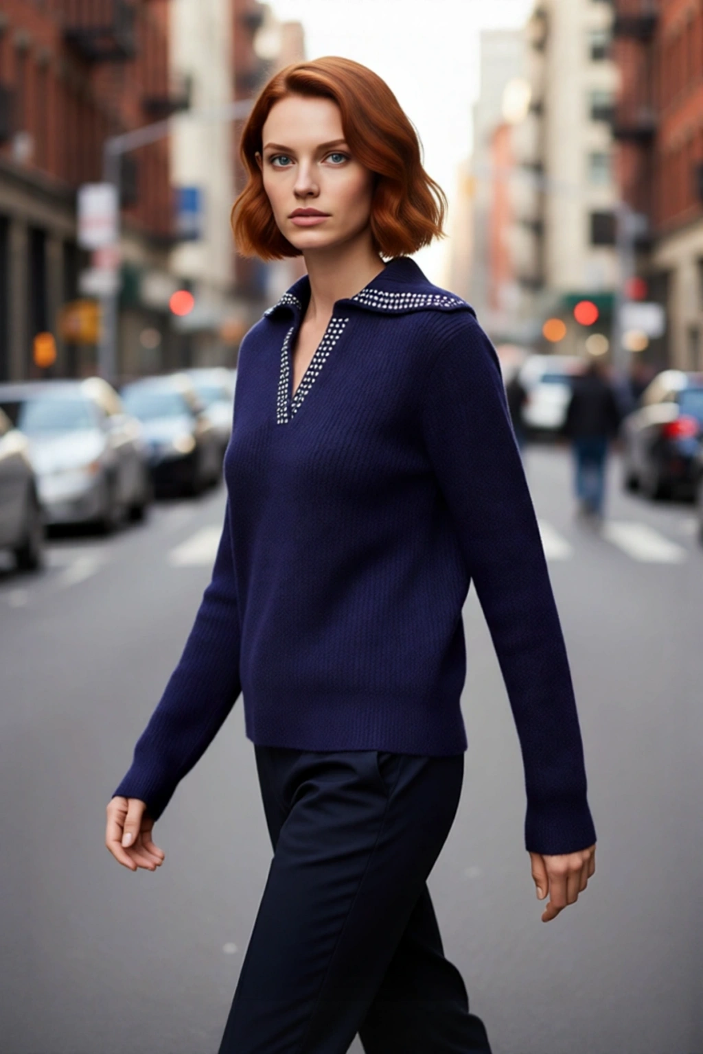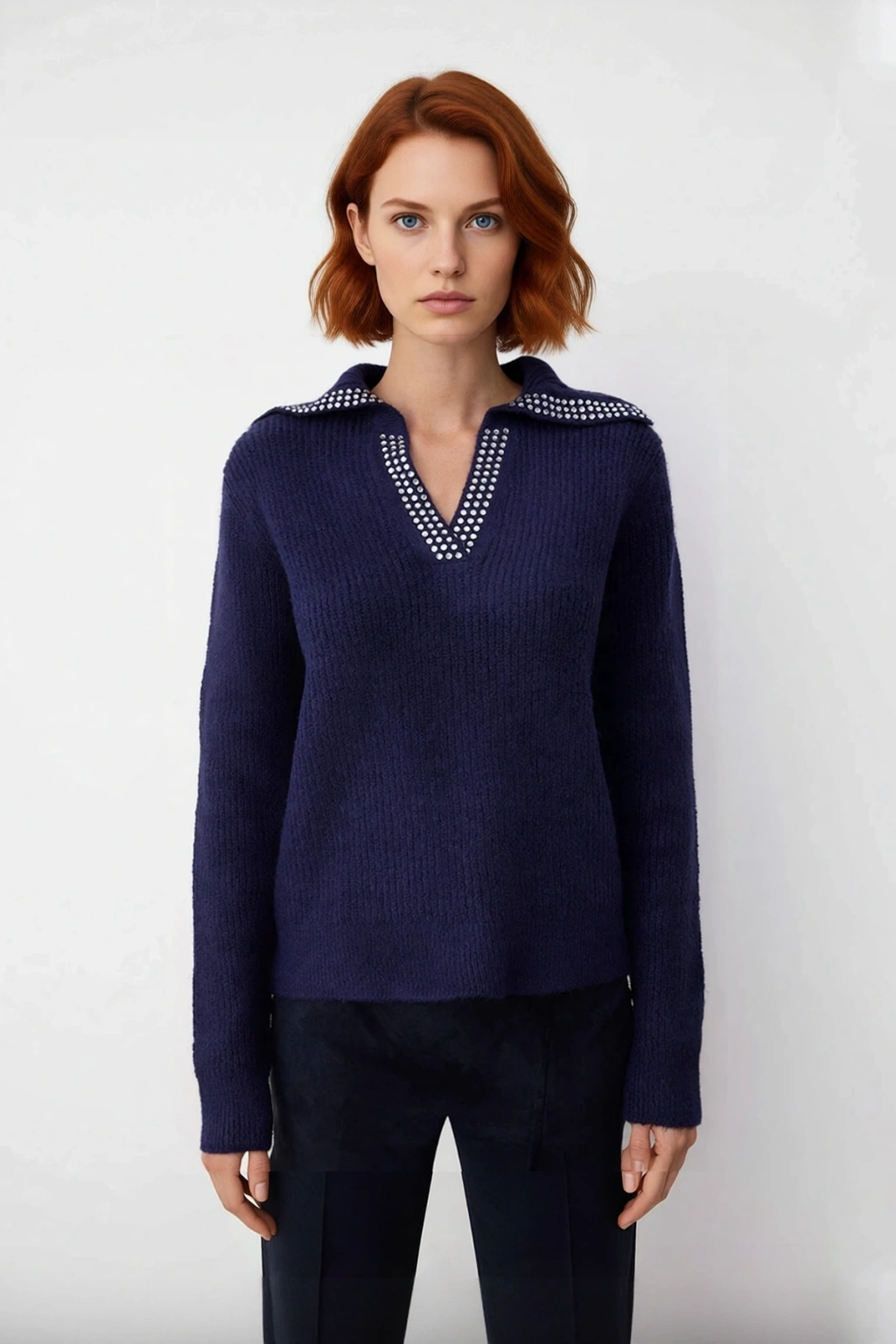 Devrik yaka tipi, hem spor hem de şık kombinler için ideal bir esneklik sunar; isteğe bağlı olarak açık veya kapalı kullanılabilir, boyun bölgesine hoş bir detay katarken taş işlemeleriyle dikkat çeker. Düşük kol yapısı, modern ve rahat bir görünüm sağlarken, uzun kol boyu kış aylarında ekstra sıcaklık sağlar. Selanik dokuma tipi triko kumaşı, nefes alabilen yapısıyla cildinizin gün boyu rahat etmesini garanti ederken, orta kalınlığı sayesinde aşırı hantal hissetmeden sıcak kalmanızı sağlar. Bu özel tasarım kazak, casual ortamlarda şıklığınızı tamamlarken, makinede yıkanabilir özelliği ile bakımı oldukça kolaydır. Dayanıklı materyal bileşimi, uzun süreli kullanım için idealdir.