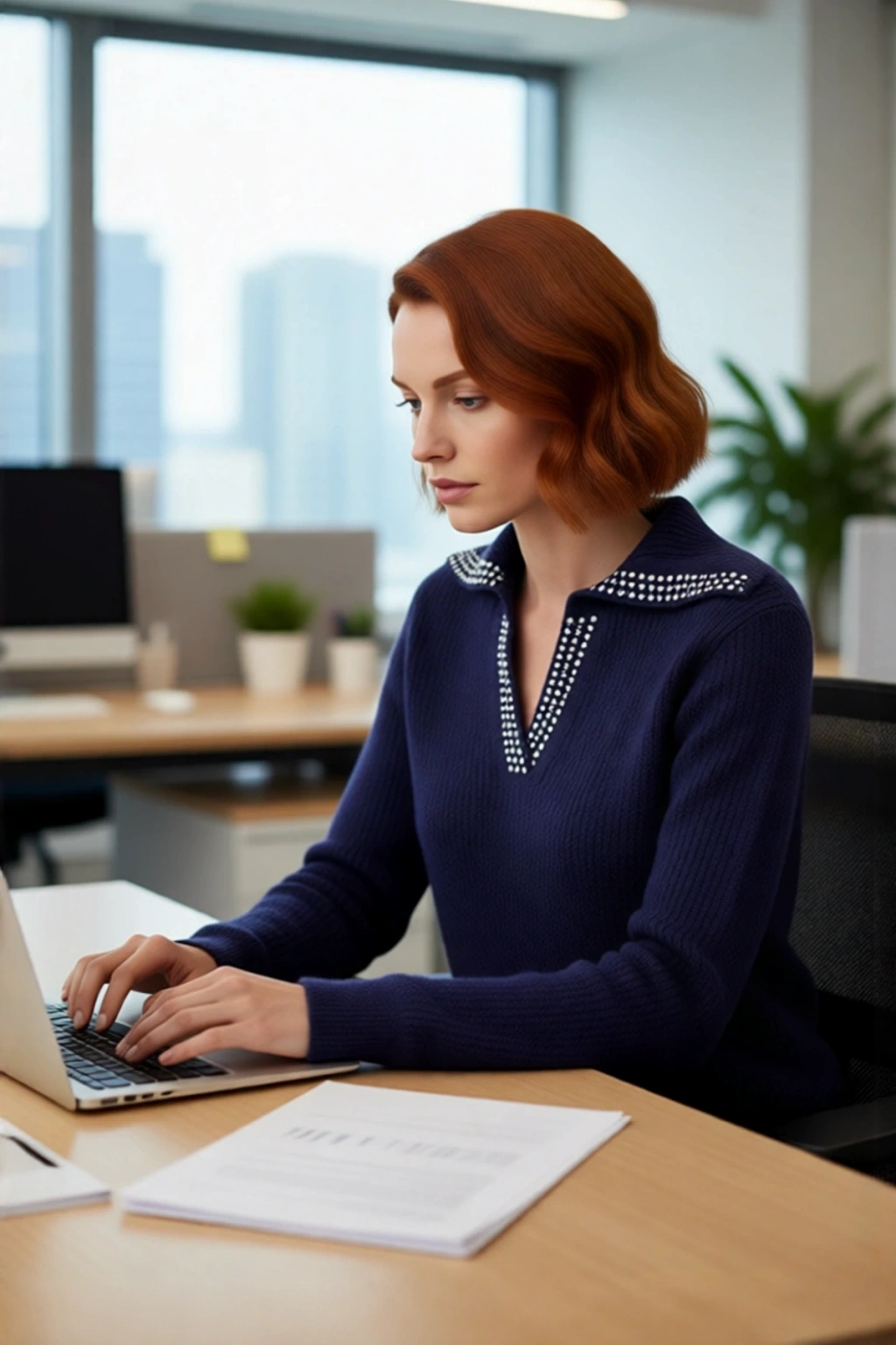 Bu kadın triko kazak, regular kalıbıyla her vücut tipine mükemmel uyum sağlayarak rahat ve şık bir duruş sunar. Yüksek kaliteli %74 akrilik ve %26 polyester materyal bileşimi sayesinde soğuk kış günlerinde sizi sıcacık tutarken, yumuşak dokusuyla gün boyu konfor vaat eder. Devrik yaka tasarımı ve taş detaylarıyla zenginleştirilmiş ekru rengi, günlük stilinize modern ve zarif bir dokunuş katar. Nakışlı/işlemeli deseni, klasik triko görünümüne hareketlilik ve özgünlük kazandırır, bu da onu kışlık kombinlerinizin vazgeçilmez bir parçası yapar. Basic silueti ile zamansız bir şıklık sunar.