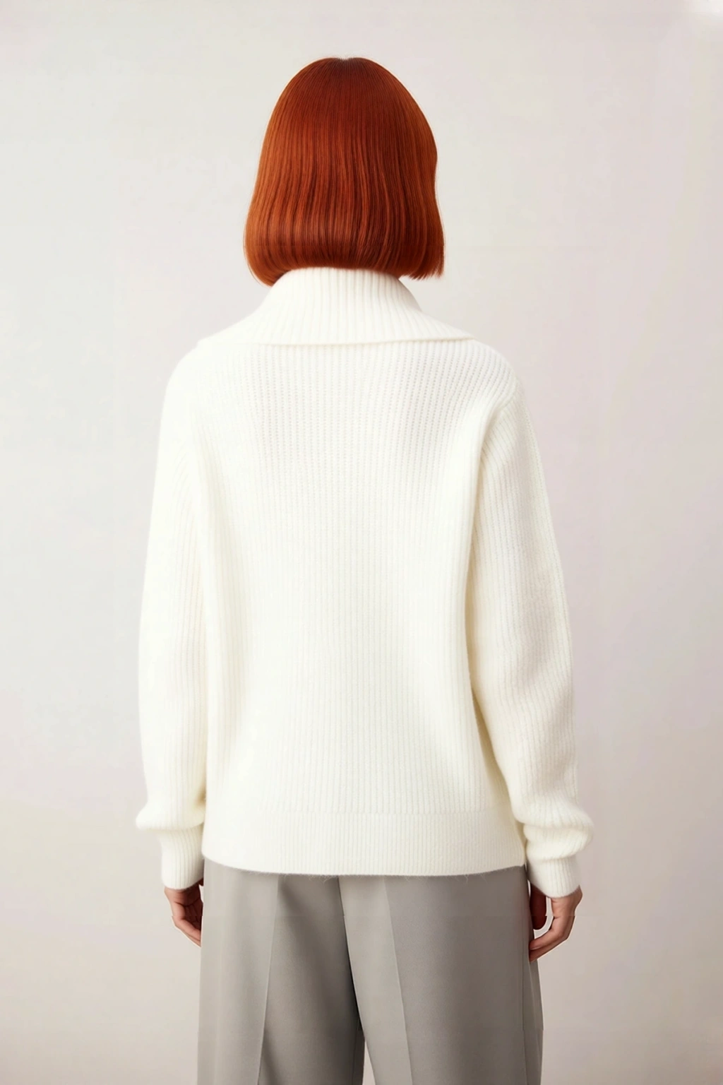 Ürün Özellikleri: Regular kalıp, %74 akrilik %26 polyester materyal, nakışlı / işlemeli desen, devrik yaka, düşük kol, triko kumaş, ekru renk, basic siluet.