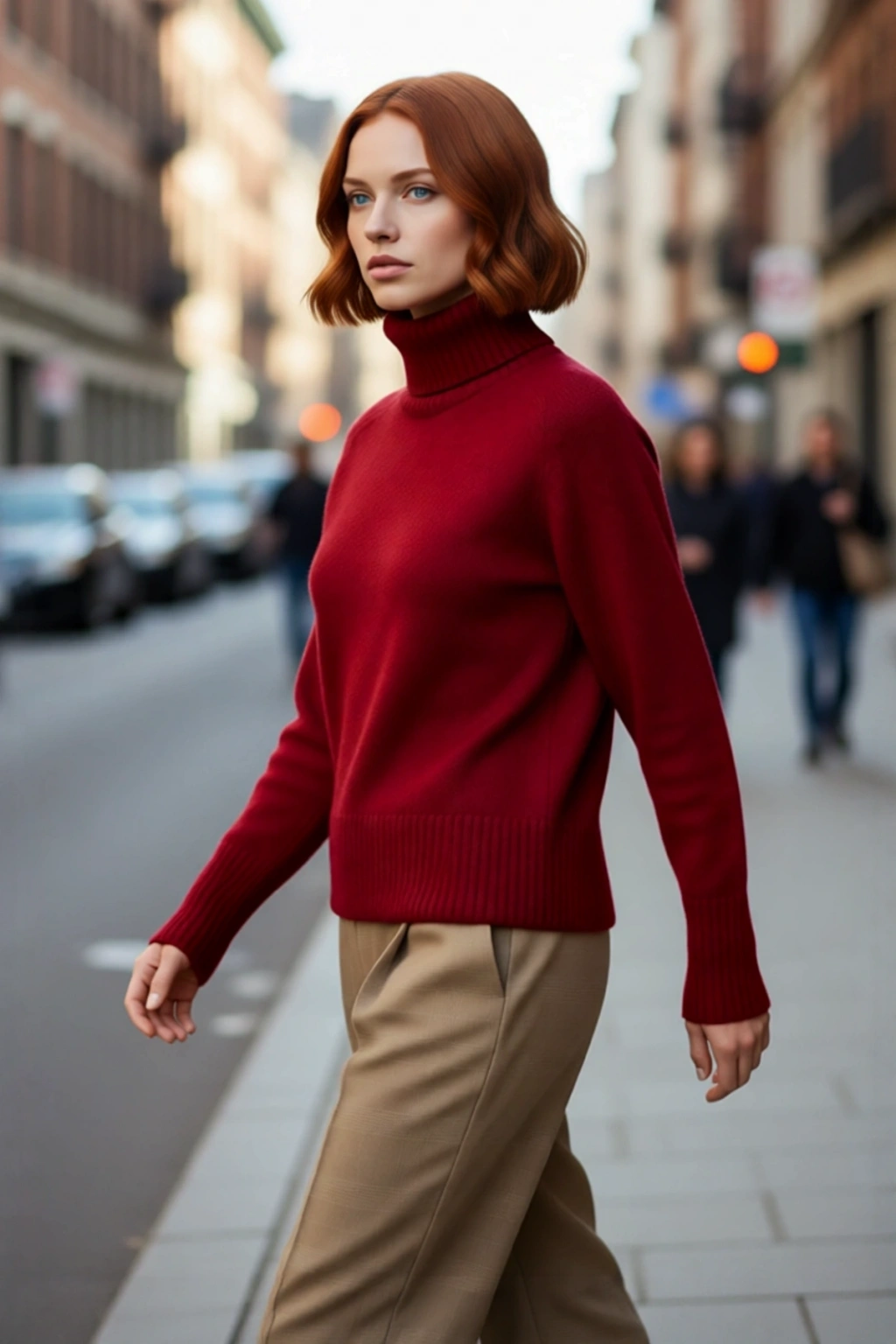 Balıkçı yaka tasarımı boynunuzu soğuktan korurken, modern ve zarif bir duruş sergiler. Reglan kol yapısı, omuz ve kol bölgelerinde daha fazla hareket özgürlüğü sağlayarak sportif bir dokunuş katar. Triko kumaş tipi, nefes alabilen yapısıyla terlemeyi önlerken, orta kalınlıktaki dokusuyla ideal bir sıcaklık dengesi sunar. Cepsiz ve kemersiz sade tasarımı, Minimalist bir şıklık arayanlar için idealdir. Tek plaka dokuma tekniği dayanıklılığı artırırken, T41 yıkama talimatıyla bakımı oldukça kolaydır.