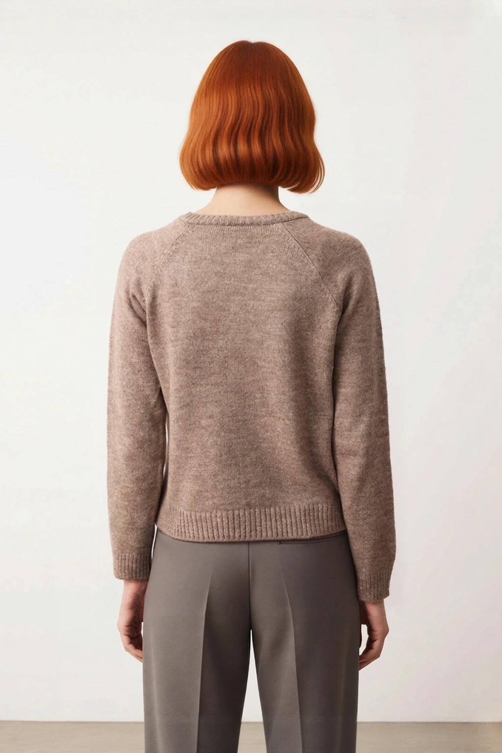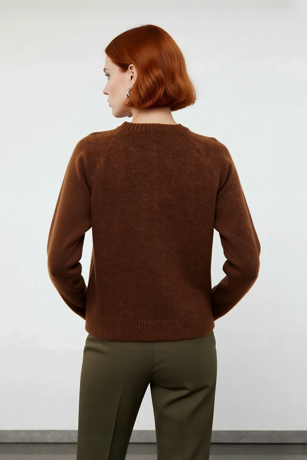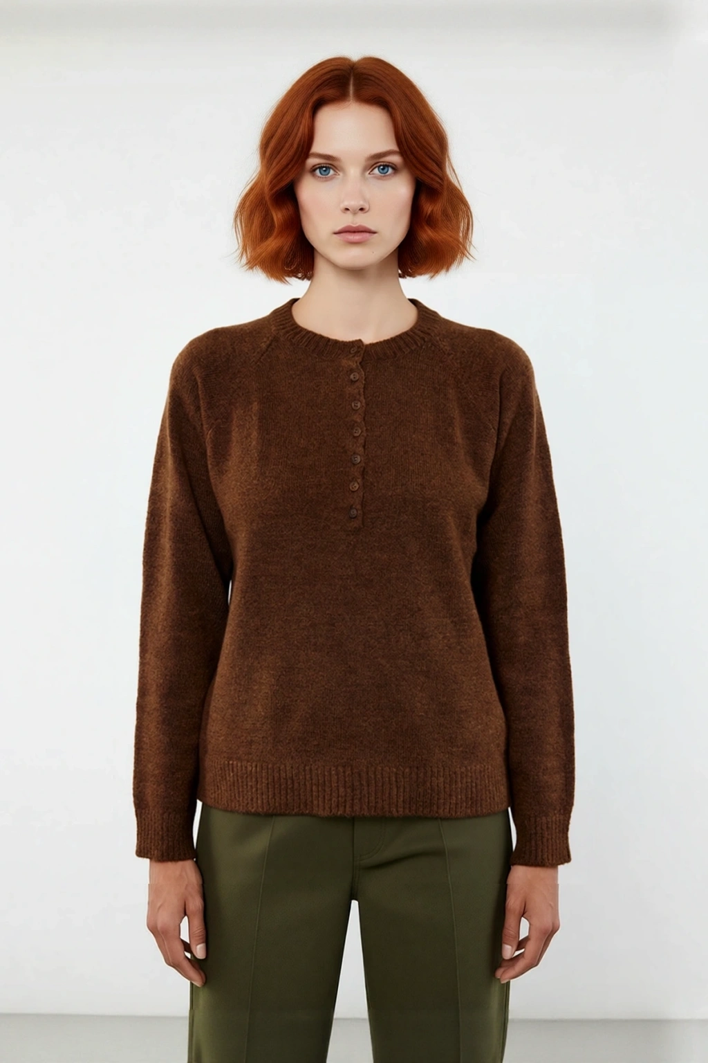 Bisiklet yaka tasarımı, ön kısmındaki zarif düğme detayları ile klasik bir dokunuş kazanır ve hem estetik hem de pratik bir kullanım sunar. Bu detay, kazağa benzersiz bir karakter katarken giyip çıkarmayı da kolaylaştırır. Reglan kol tipi, omuzlarda doğal bir düşüş sağlayarak modern bir siluet oluşturur ve kol hareketlerinizde maksimum özgürlük tanır. Orta kalınlıktaki triko kumaş yapısı, ideal bir sıcaklık sunarken aynı zamanda nefes alabilirliği sayesinde gün boyu rahatlık sağlar, terlemeyi önler. Dayanıklı tek plaka dokuma tipi ve kaliteli materyal bileşimi, kazağın uzun süreli kullanımlarda bile formunu ve rengini korumasını garanti eder. Makinede yıkanabilir özelliği ile bakımı oldukça kolay ve zahmetsizdir.