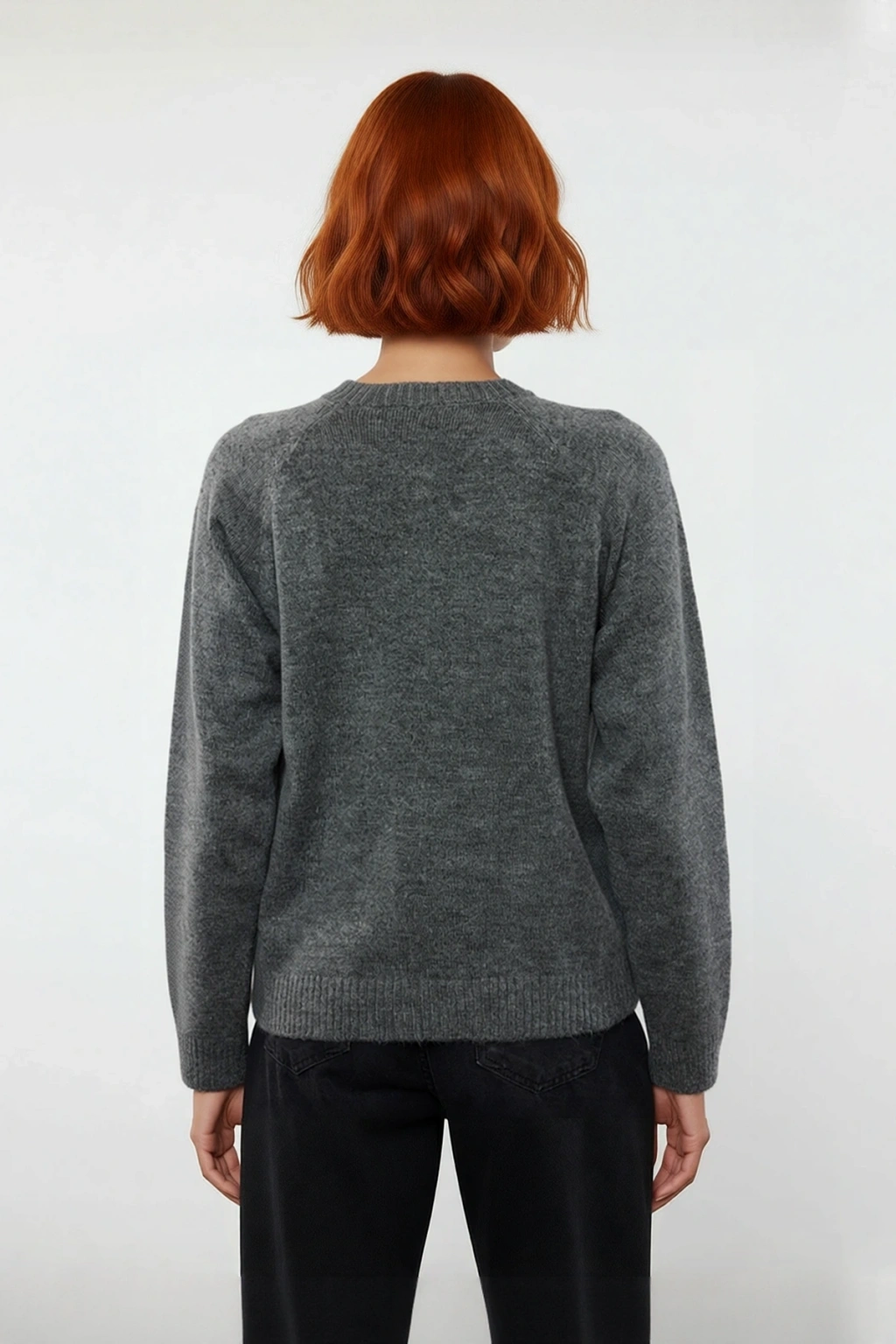 Ürün Özellikleri: Regular kalıp, akrilik polyester materyal, düz desen, bisiklet yaka, reglan kol, triko kumaş, gri renk.