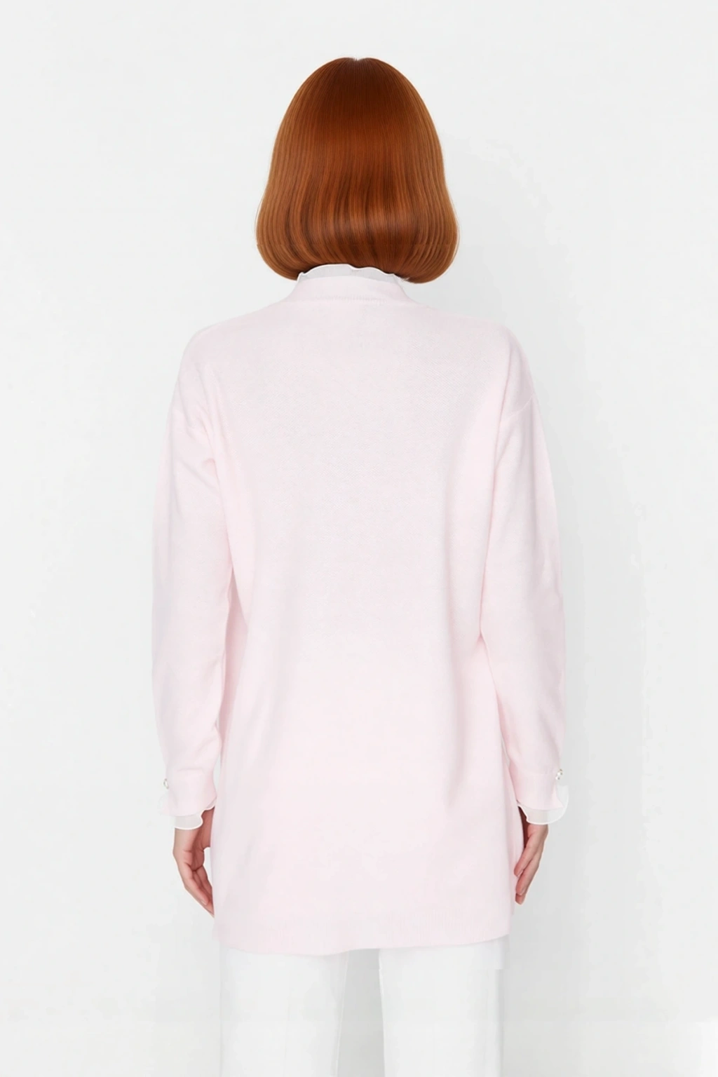 Bisiklet yaka tasarımı, klasik ve zamansız bir görünüm sunarken, düşük kol yapısı modern ve rahat bir duruş sağlar. Uzun kollu bu kazak, orta kalınlıktaki triko kumaş tipi ve pike dokumasıyla nefes alabilirlik ve dayanıklılığı bir arada sunar. Cepsiz tasarımı, ürünün akıcı siluetini korurken, kemersiz yapısı farklı kombinasyonlar için esneklik tanır. Bu kazak, şıklığı ve fonksiyonelliği bir araya getiren detaylarıyla öne çıkar. Makinede yıkanabilir olması (T41 yıkama talimatına uygun), bakımını son derece pratik hale getirir ve uzun ömürlü kullanım vaat eder. Kol ve yaka kısmındaki inci ve dantel detaylar, her anınıza ışıltı katarak sizi özel hissettirir.