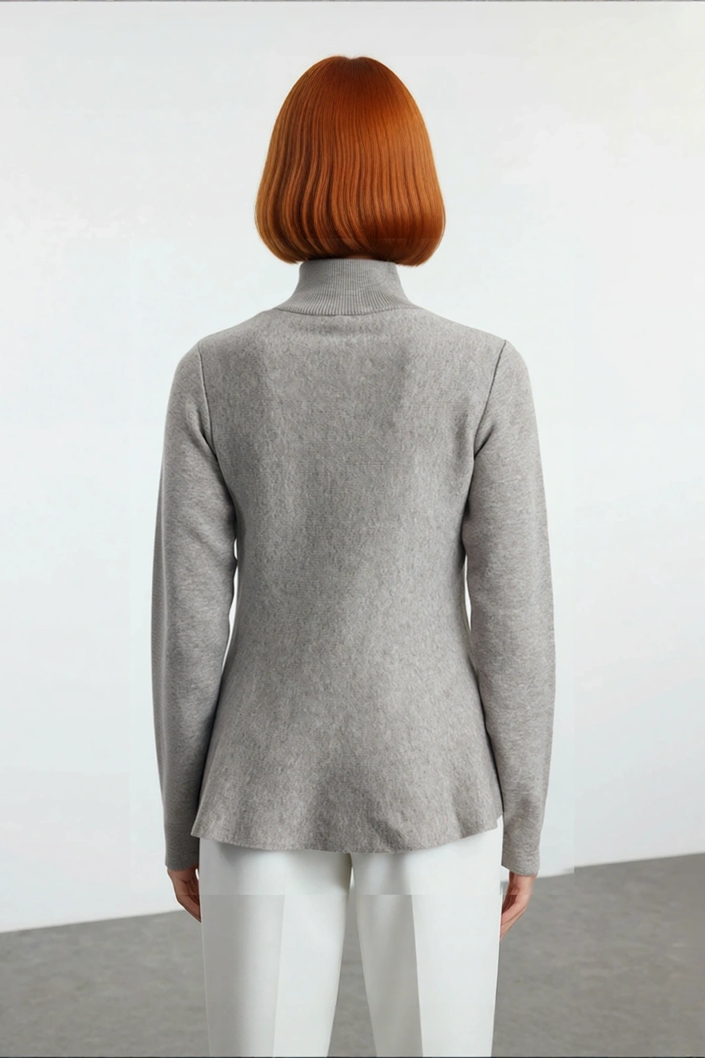 Dik yaka tasarımı boyun bölgesini nazikçe sararak soğuktan korur ve aynı zamanda sofistike bir dokunuş katarak basic siluetini güçlendirir. Uzun standart kol yapısı, hareket özgürlüğünüzü kısıtlamadan rahat bir kullanım sağlar. Orta kalınlıktaki tek plaka triko kumaşı, nefes alabilen yapısıyla terletmeden sıcak tutar ve uzun boyuyla ekstra konfor sunar. Cepsiz ve kemersiz düz kesimi, zarif ve akıcı bir siluet yaratır. T41 yıkama talimatına uygun olarak makinede yıkanabilir özelliği sayesinde bakımı oldukça pratiktir, uzun ömürlü kullanım için idealdir ve menşei Türkiye'dir.