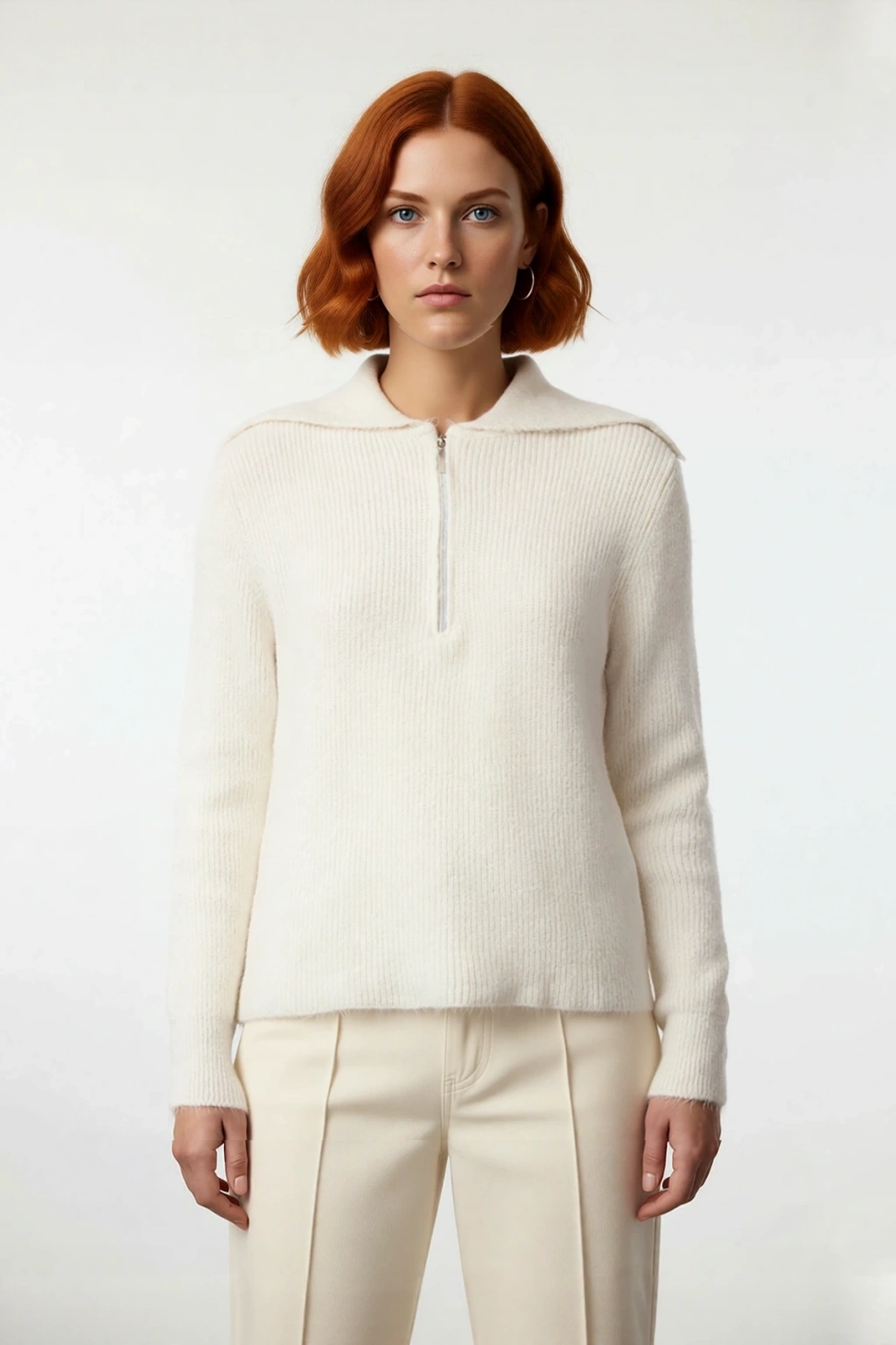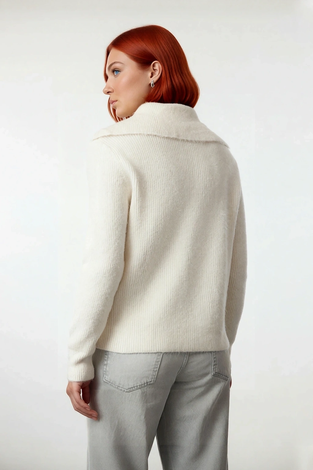 Ürün Özellikleri: Regular kalıp, %72 Akrilik %20 Polyester %8 Yün materyal, düz desen, polo yaka, standart kol, triko kumaş, ekru renk, orta kalınlık, casual/günlük ortam, kış sezonu, selanik dokuma.