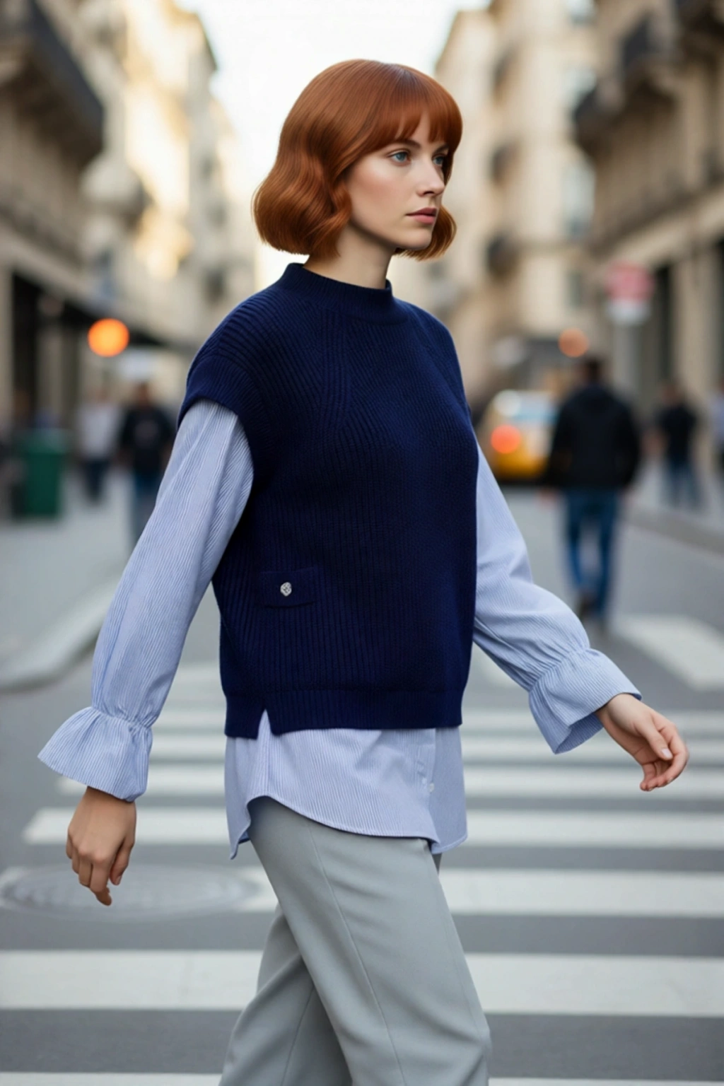 Bisiklet yaka tasarımı klasik zarafeti yansıtırken, kolsuz yapısı sayesinde farklı gömlekler veya ince bluzlarla kolayca kombinlenebilir, stilinize özgürlük katar. Selanik dokuma triko kumaşı orta kalınlığıyla ideal bir sıcaklık dengesi sunar ve nefes alabilir özelliğiyle gün boyu konfor sağlar. Basic silueti ve cepsiz minimalist yapısı, her türlü alt giyimle uyum içinde kullanılabilir, gardırobunuzdaki diğer parçalarla kolayca bütünleşir. "Cool & Comfort" personasına uygun bu süveter, makinede yıkanabilir kolay bakımıyla pratik bir kullanım sunar ve uzun ömürlü kalitesiyle gardırobunuzun vazgeçilmezi olur, şıklığınızı yıllarca korur.