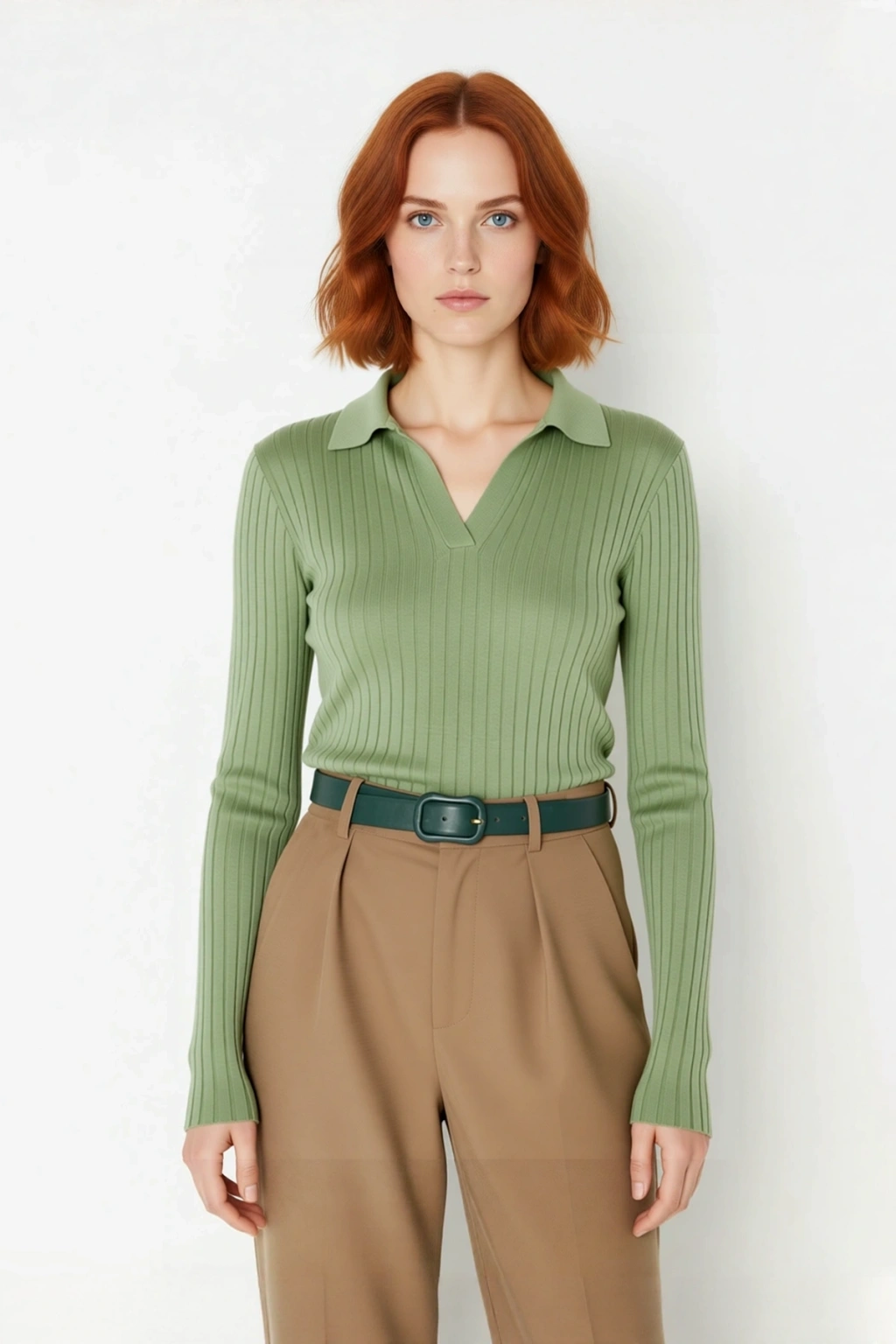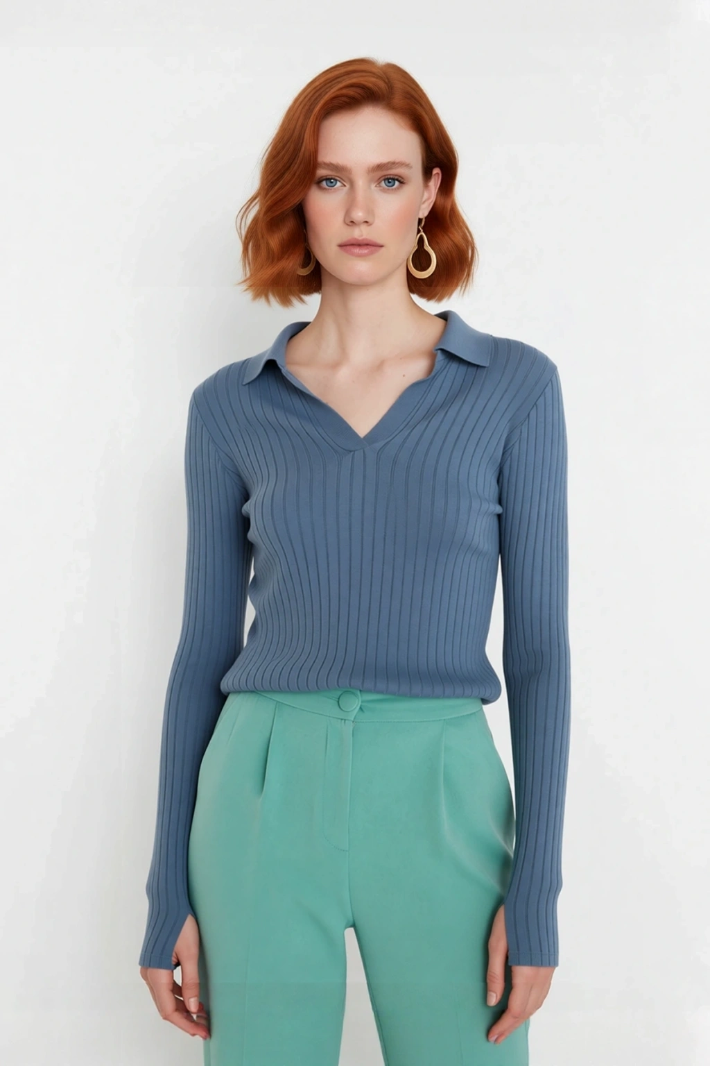 Polo yaka tasarımı, hem spor hem de şık kombinler için mükemmel bir denge sunarak çok yönlü kullanım imkanı sağlar. Uzun standart kolları, soğuk havalarda bileklerinizi sıcak tutarken, rahat bir kullanım deneyimi sunar. Triko kumaş tipi, esnek ve nefes alabilen yapısıyla cildinizin gün boyu hava almasını ve rahat etmesini garanti eder, böylece uzun süreli kullanımlarda bile maksimum konfor sağlar. Fitilli dokuma detayı, kazaka derinlik ve özgün bir karakter katarken, basic silueti sayesinde minimal ve modern bir estetik sunar. Bu kazak, şıklık ve rahatlığı bir arada arayan kadınlar için ideal bir seçimdir. Yüksek kaliteli akrilik materyali sayesinde dayanıklıdır ve makinede yıkanabilir özelliği ile bakımı oldukça kolaydır; yıkama talimatlarına uyulduğunda uzun süre formunu ve rengini korur.