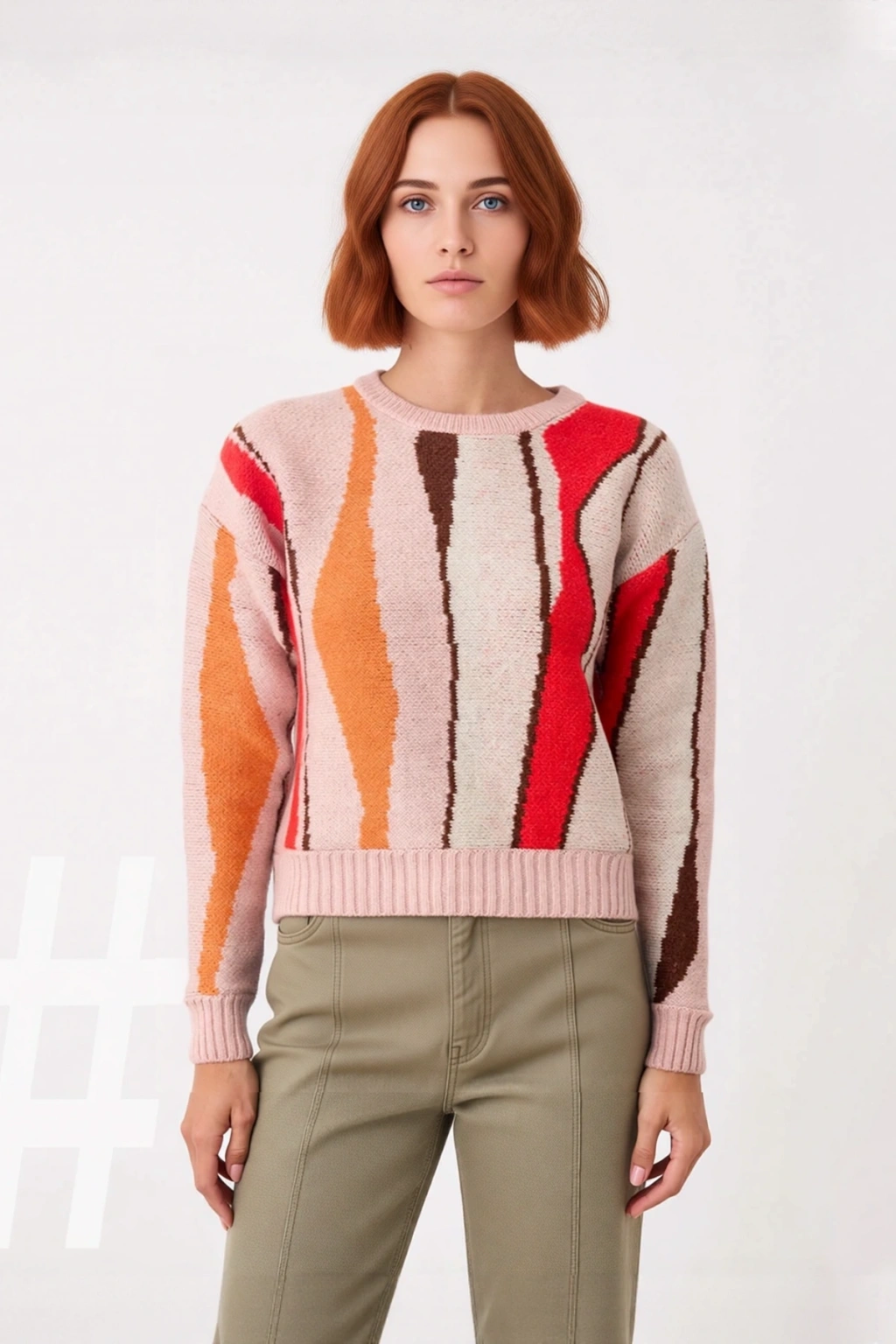 Bu Kadın Regular Kalıp Renk Bloklu Bisiklet Yaka Triko Kazak, soğuk kış günlerinde şıklık ve konforu mükemmel bir şekilde bir araya getiriyor. Regular kalıbı sayesinde vücuda rahatça oturarak özgür bir hareket alanı sunarken, dikkat çekici renk bloklu deseni ile modern ve dinamik bir stil yaratır. Pembe ana zemin üzerinde turuncu, kırmızı, kahverengi ve bej tonlarının harmonik geçişleri, enerjik ve göz alıcı bir görünüm sağlar. Yumuşacık akrilik ve polyester karışımı materyali, dokunduğunuz anda hissedilen konforu ve gün boyu süren sıcaklığı garantiler. Bu kazak, casual ve günlük ortamlar için vazgeçilmez bir parçadır.
