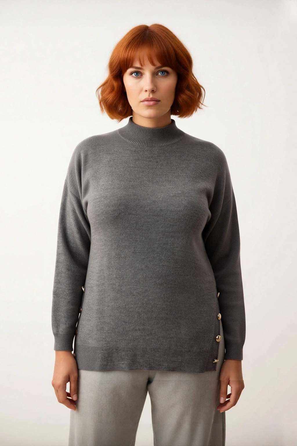 Ürün Özellikleri: Relaxed kalıp, akrilik materyal, düz desen, balıkçı yaka, standart kol, triko kumaş, gri renk, düğme detaylı tasarım.