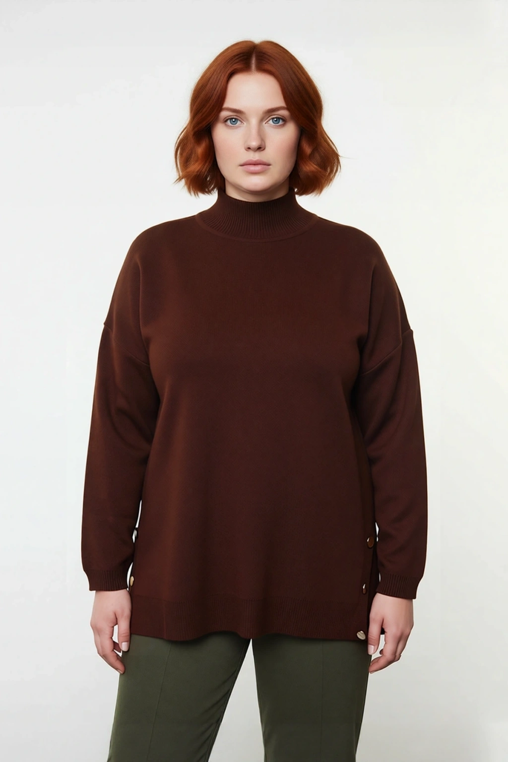 Bu kadın triko kazak, relaxed kalıbı ile gün boyu rahatlık ve özgür bir hareket alanı sunarken, şık duruşuyla stilinizi tamamlar. Yüksek kaliteli akrilik materyali sayesinde yumuşacık bir dokunuş hissi verir ve soğuk havalarda sizi sıcacık tutar. Düz deseni ve gri rengi, her tarza kolayca uyum sağlayabilen zamansız bir parça olmasını garanti eder. Yan kısımlarındaki zarif düğme detayları, basic siluetine modern ve özgün bir dokunuş katarak kazak giyiminde fark yaratır. Bu özel tasarım, hem konforu hem de estetiği bir arada arayan kadınlar için idealdir.