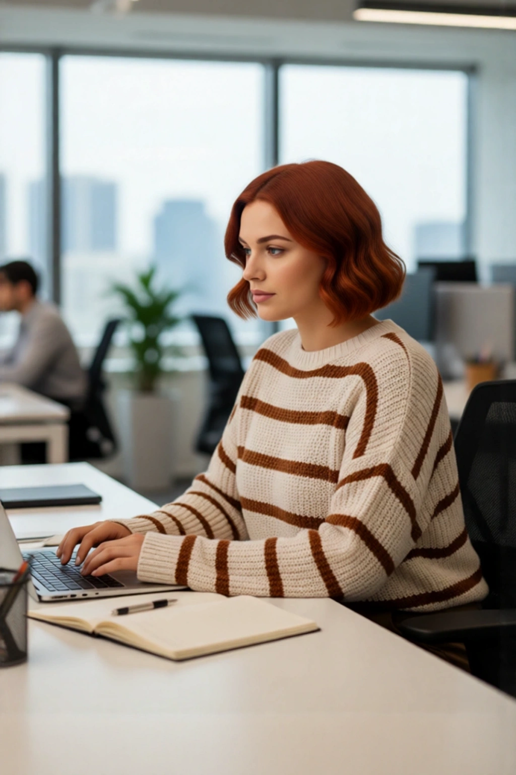 Bu rahat ve şık Kadın Relaxed Kalıp Triko Kazak, soğuk havalarda bile tarzınızdan ödün vermeden sıcak kalmanızı sağlar. %100 akrilik materyali sayesinde yumuşacık dokusuyla cildinize dosttur ve gün boyu süren konfor sunar. Klasik lacivert rengi üzerine işlenmiş zarif çizgili deseni, denizci şıklığını modern bir dokunuşla birleştirir. Bu kazak, casual giyim tarzını benimseyen kadınlar için gardırobun olmazsa olmaz parçalarından biridir. Düşük omuz detayıyla son derece modern bir duruş sergilerken, rahat kalıbı hareket özgürlüğü tanır.