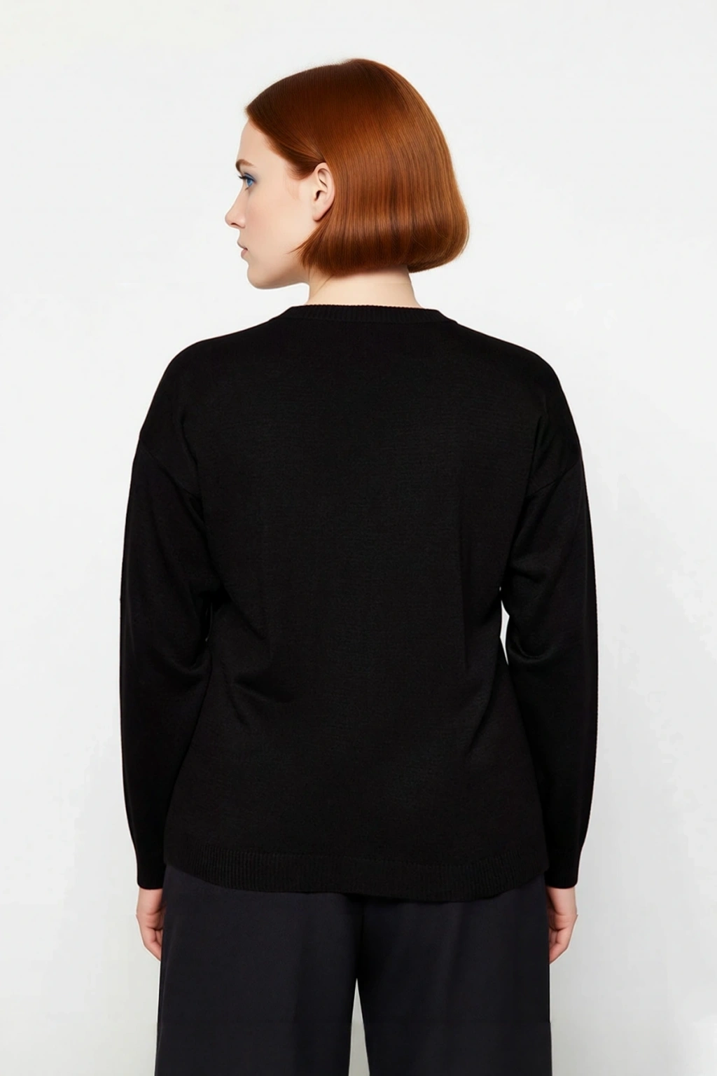 Ürün Özellikleri: Relaxed kalıp, triko materyal, düz desen, dik yaka, standart kol, tek plaka triko kumaş, siyah renk, baskısız tasarım.