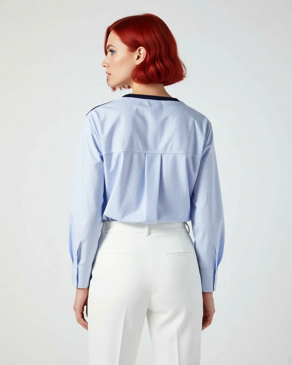 Bu şık ve konforlu kadın triko kazak, relaxed kalıbı sayesinde gün boyu rahat bir kullanım sunar. Vücuda oturmayan, salaş kesimi hareket özgürlüğü sağlarken, lacivert triko üzerine eklenen çizgili gömlek detayı modern ve katmanlı bir görünüm yaratır. 100% akrilik ve pamuk karışımı materyal bileşeni sayesinde hem sıcak tutar hem de cildinize nazik bir dokunuş hissi verir. Bu özel tasarım, soğuk havalarda stilinizden ödün vermeden sıcak kalmak isteyenler için idealdir. Çizgili deseni ve lacivert rengiyle casual şıklığın yeni tanımını sunar.