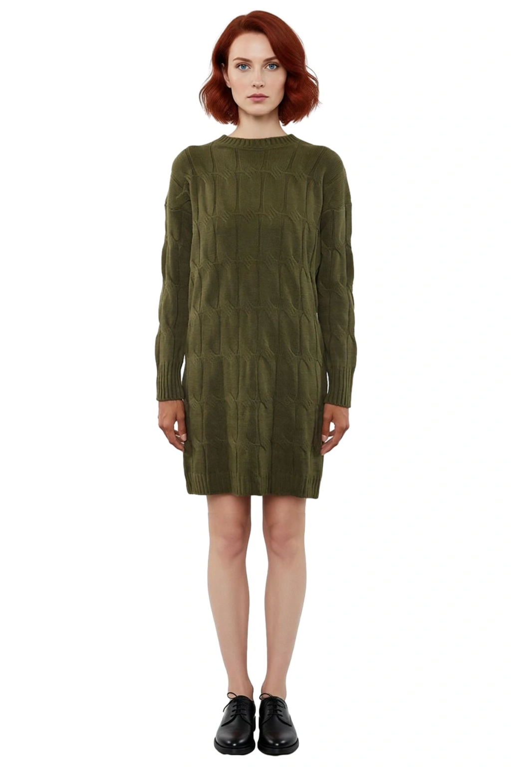 Bisiklet yaka tasarımı zamansız bir şıklık sunarken, düşük kol ve uzun kol boyu rahat bir kullanım deneyimi sağlayarak hareket özgürlüğünüzü kısıtlamaz. Triko kumaş dokusu nefes alabilen yapısıyla cildinize dosttur ve astarsız olmasına rağmen yeterli örtücülük sunar, iç göstermez. Tek plaka dokuma tipi, elbisenin dayanıklılığını artırarak uzun ömürlü kullanım garanti eder. Bu sayede favori parçalarınızdan biri haline gelecek. Makinede yıkanabilir özelliği ile bakımı oldukça kolaydır, özel bir çaba gerektirmez ve böylece değerli zamanınız size kalır. Kısa/mini boyu ile genç ve dinamik bir görünüm yaratırken, modern tarzınızı vurgular.