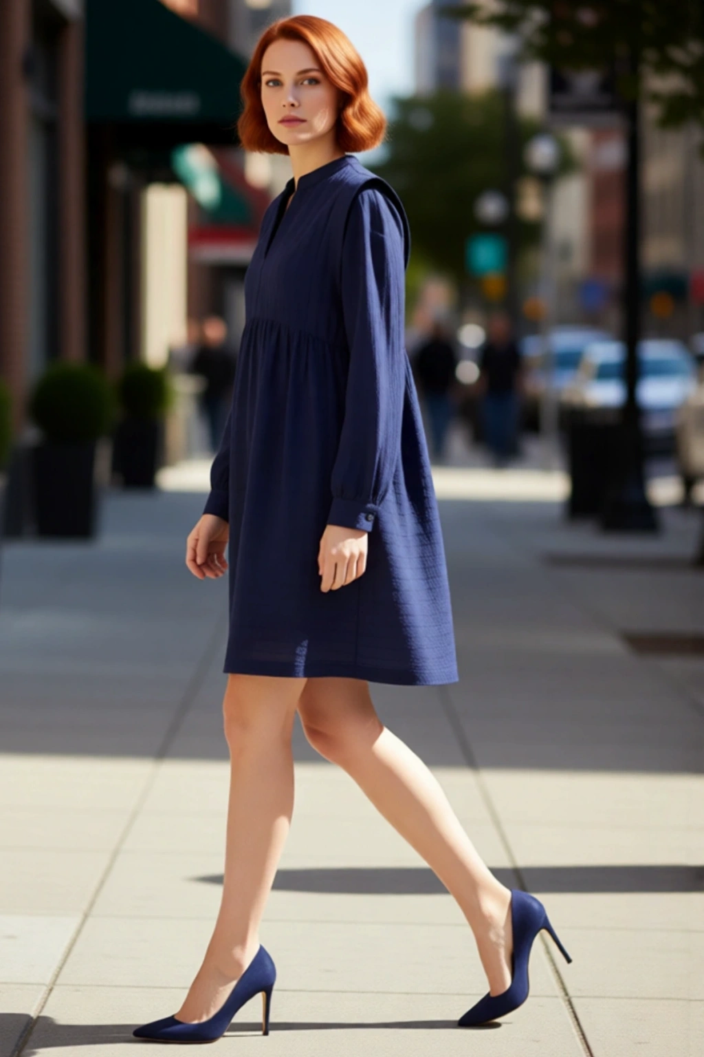 Bu kadın elbisesi, modern ve rahat shift kalıbı ile gün boyu konfor sunarken, her vücut tipine şık bir duruş kazandırır. Yumuşak dokulu viskoz ve poliamid karışımı materyali sayesinde cildinize nazikçe dokunur ve nefes alabilir bir yapıya sahiptir. Düz deseni, sade ve zarif bir estetik arayanlar için ideal olup, lacivert rengiyle farklı aksesuarlarla kolayca kombinlenebilir. Özellikle ilkbahar ve sonbahar aylarının geçiş dönemlerinde serin havalarda stilinizi tamamlayacak vazgeçilmez bir parçadır. Cool & Comfort personasını yansıtan bu elbise, şıklığı ve rahatlığı bir arada sunarak gardırobunuzun favorisi olmaya adaydır.