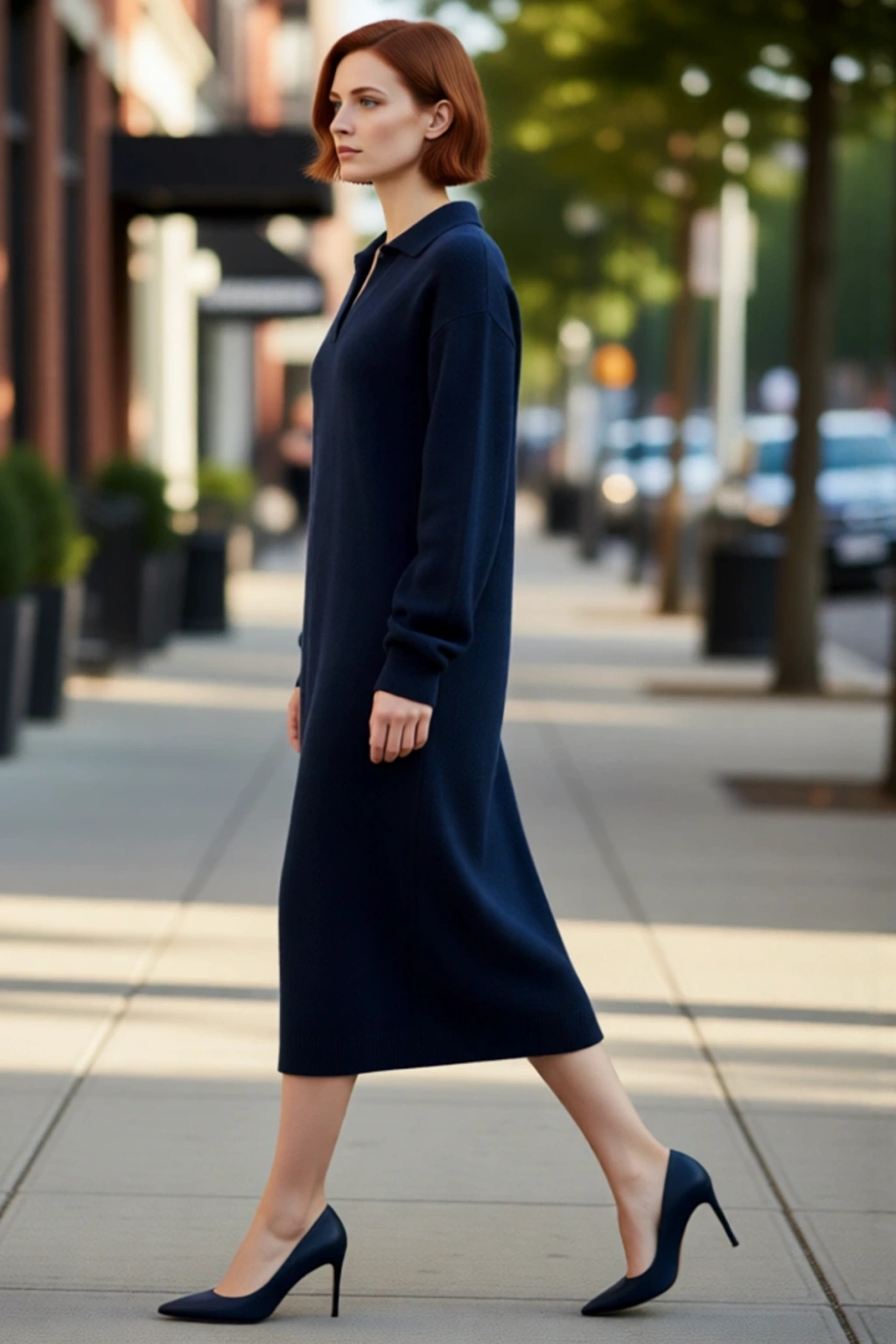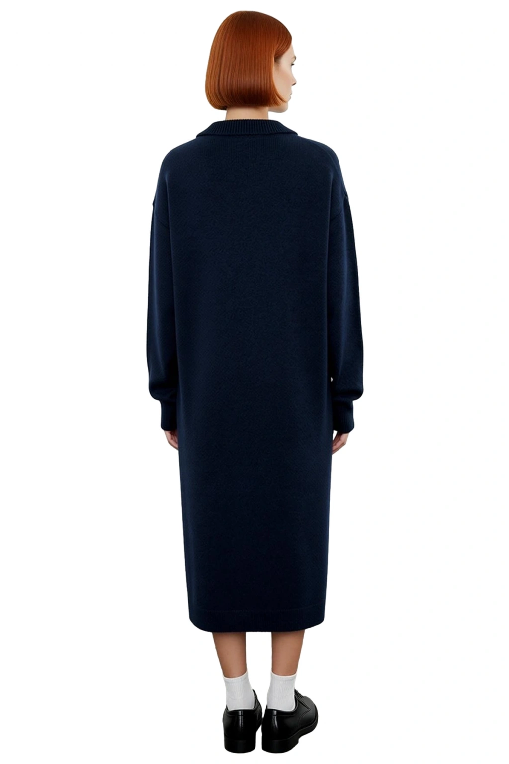 Polo yaka tasarımı, klasik ve spor şıklığı bir araya getirerek elbiseye özgün bir hava katar ve "Cool & Comfort" personasına mükemmel uyum sağlar. Düşük kol kesimi ve uzun kol boyu, hareket özgürlüğü sunarken modern bir siluet oluşturur. Cepsiz yapısı, temiz ve akıcı bir görünüm sağlarken, triko kumaş dokusu nefes alabilirlik özelliğiyle gün boyu rahatlık vaat eder. Orta kalınlıktaki yapısı, soğuk kış günlerinde sizi sıcacık tutarken, aynı zamanda hafif bir his sunar. Kolay ütülenebilen ve makinede T41 yıkama talimatına uygun yapısıyla bakımı oldukça pratiktir. Bu elbise, hem estetik hem de fonksiyonellik açısından beklentilerinizi karşılayacak şekilde tasarlanmıştır. Kaliteli materyal bileşimi, uzun ömürlü kullanım garantisi sunar.