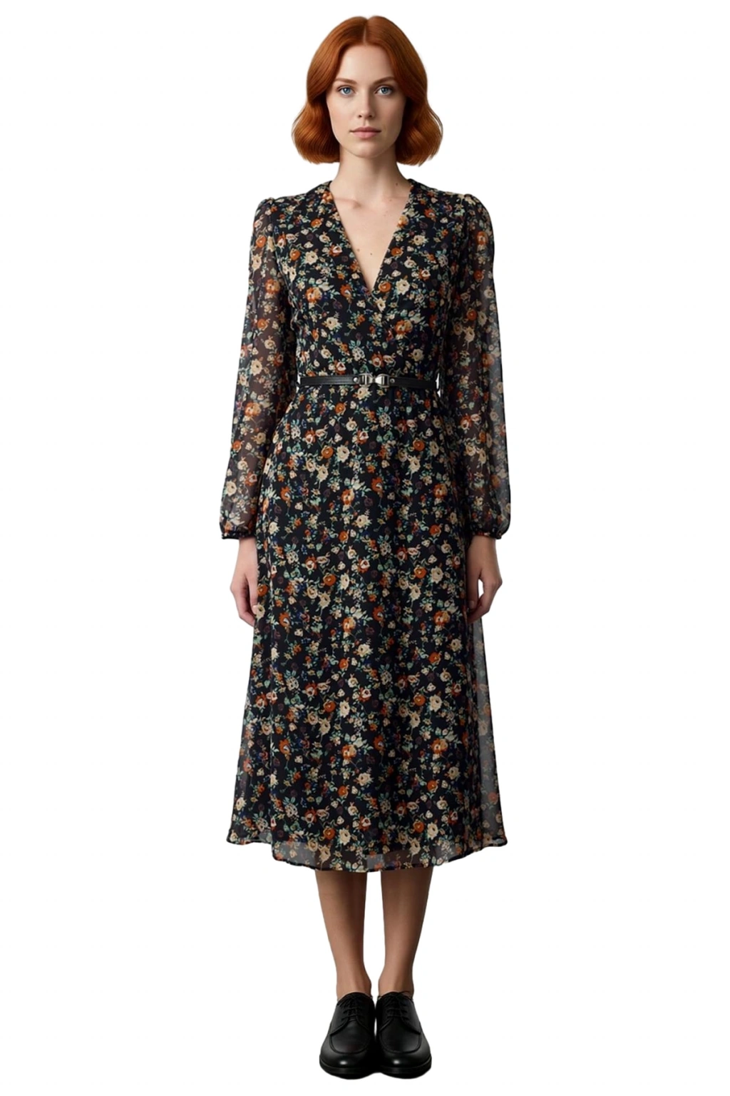 Kruvaze yaka, boyun bölgesine şık bir açıklık katarken, Balon kol tasarımı uzun ve hacimli yapısıyla modern bir dokunuş ekler. Uzun kollu olması, mevsim geçişlerinde ideal bir seçenek sunar. Dokuma kumaşın nefes alabilen yapısı, sıcaklık değişimlerine karşı vücut konforunu destekler. Cepsiz oluşu, elbisenin sade ve akışkan çizgilerini bozmaz. Yüksek kaliteli polyester materyali, uzun süreli kullanıma uygun dayanıklılık sunarken, kolay ütülenebilir ve makinede yıkanabilir özelliğiyle pratik bir bakım imkanı tanır. Gündüz ve gece kombinlerinizde rahatlıkla kullanabilirsiniz.