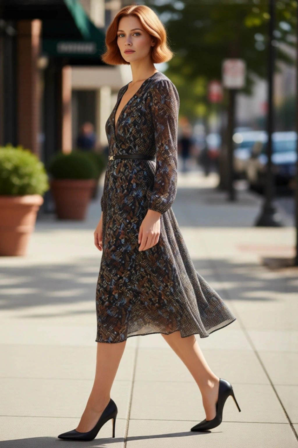 Bu midi boy elbise, her vücut tipine uyum sağlayan Skater kesimiyle gardırobunuzun kurtarıcı parçası olacak. Topuklu ayakkabılarla özel davetlerde, babetlerle veya sandaletlerle gündelik şıklıkta tercih edilebilir. Özellikle ilkbahar ve sonbahar mevsimlerinin serin akşamlarında veya kapalı ortamlarda kış aylarında bile rahatlıkla giyilebilir. Modern ve trend bir görünüm arayan kadınlar için idealdir.