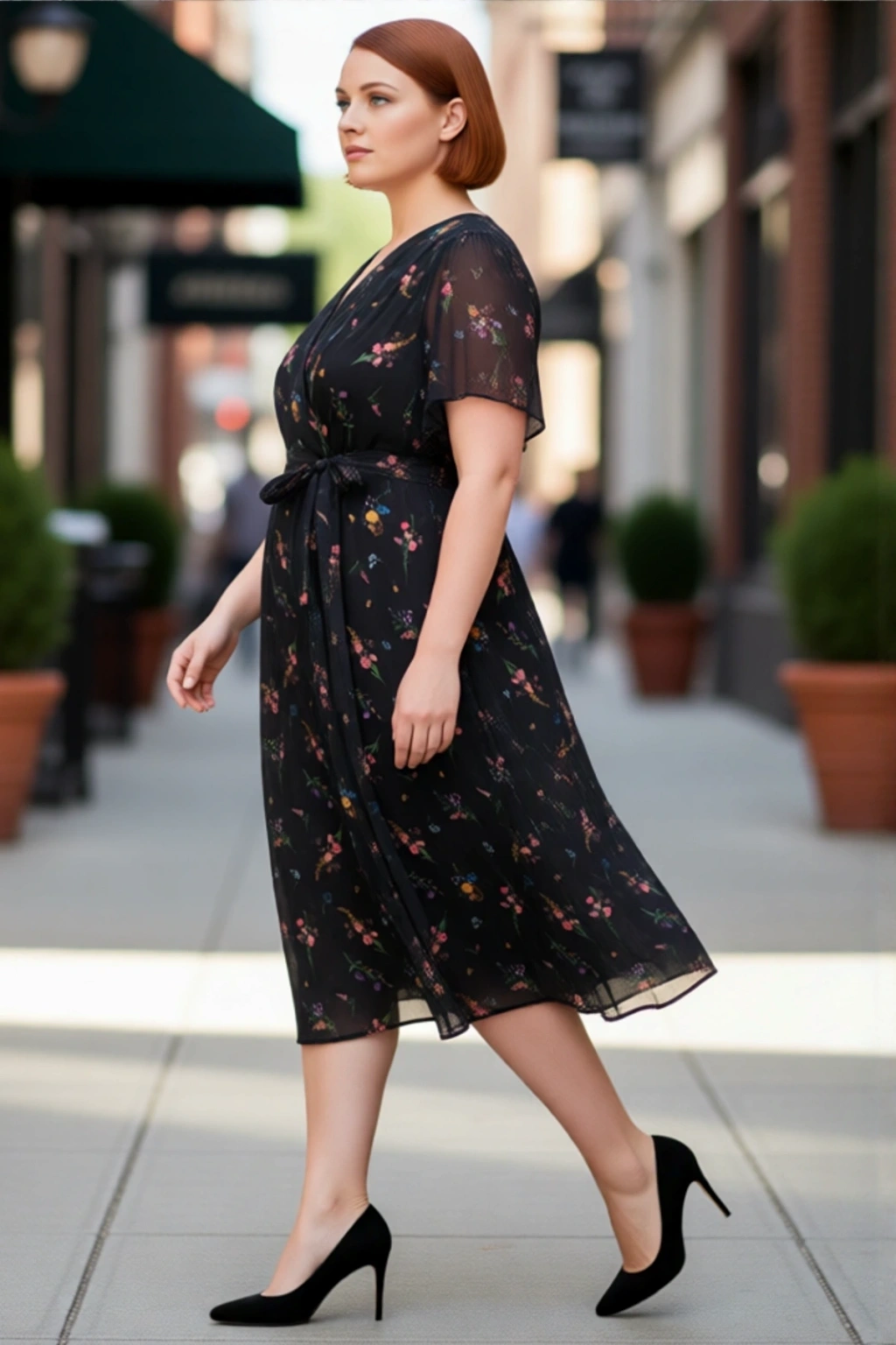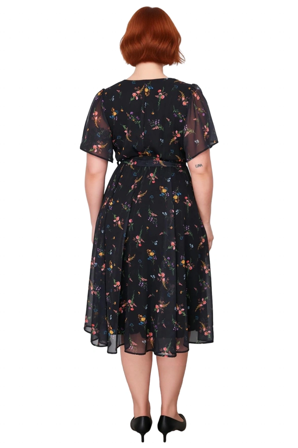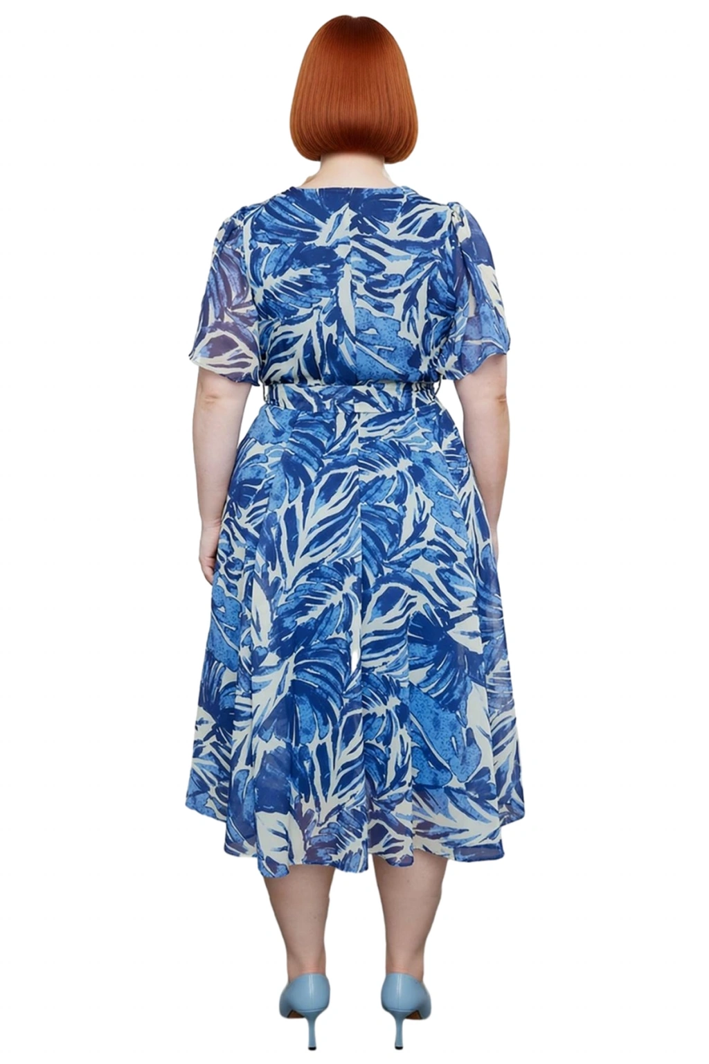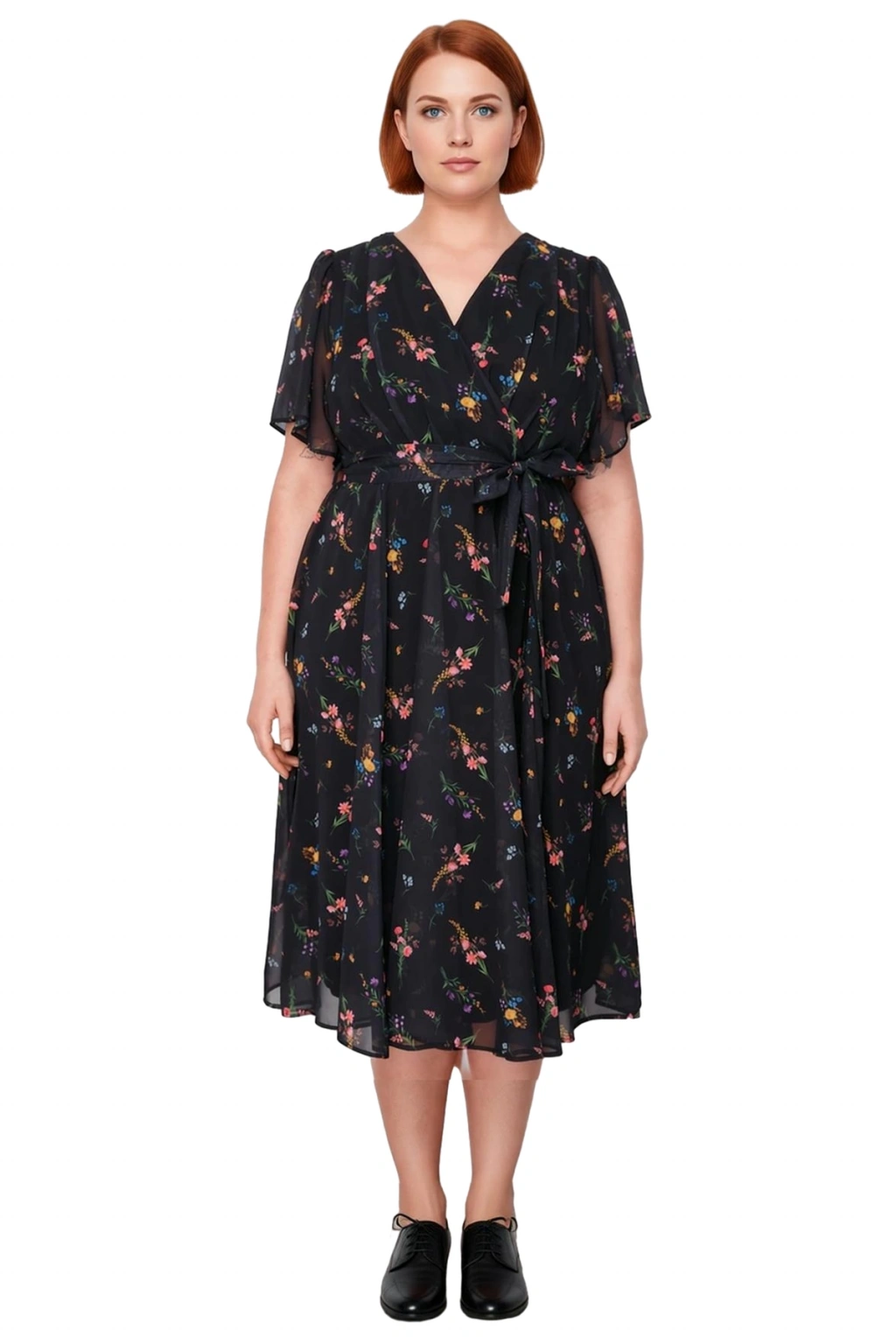Ürün Özellikleri: A-line kalıp, 100% Polyester materyal, çiçekli desen, V yaka, melek kol, dokuma şifon kumaş, çok renkli, astarsız tasarım.