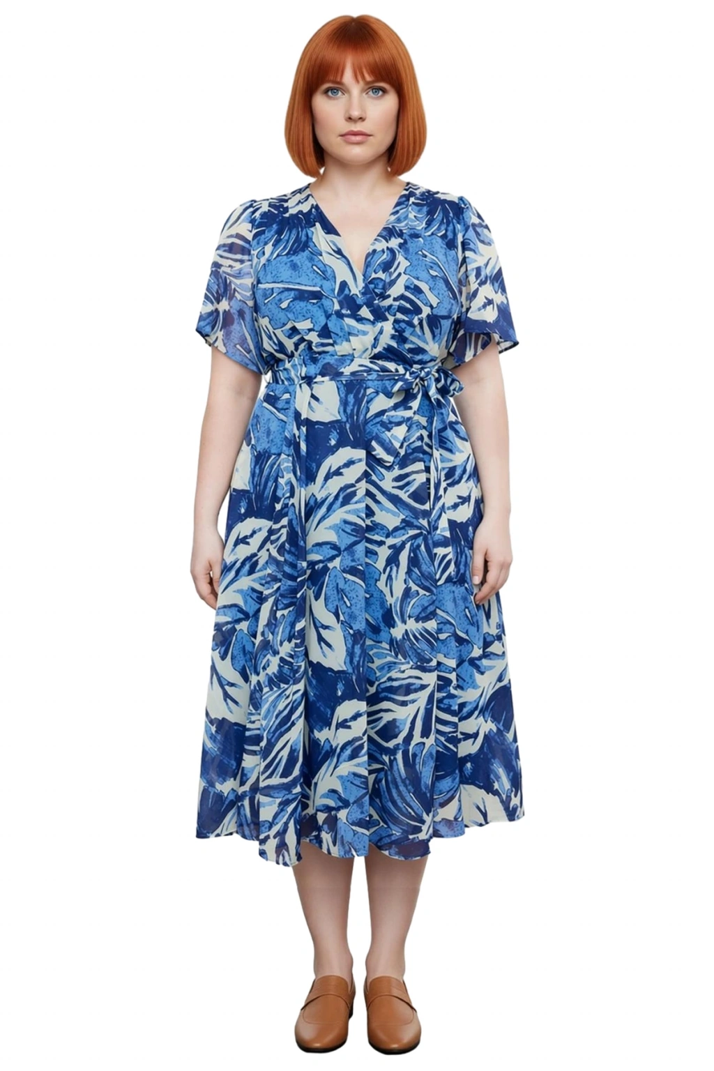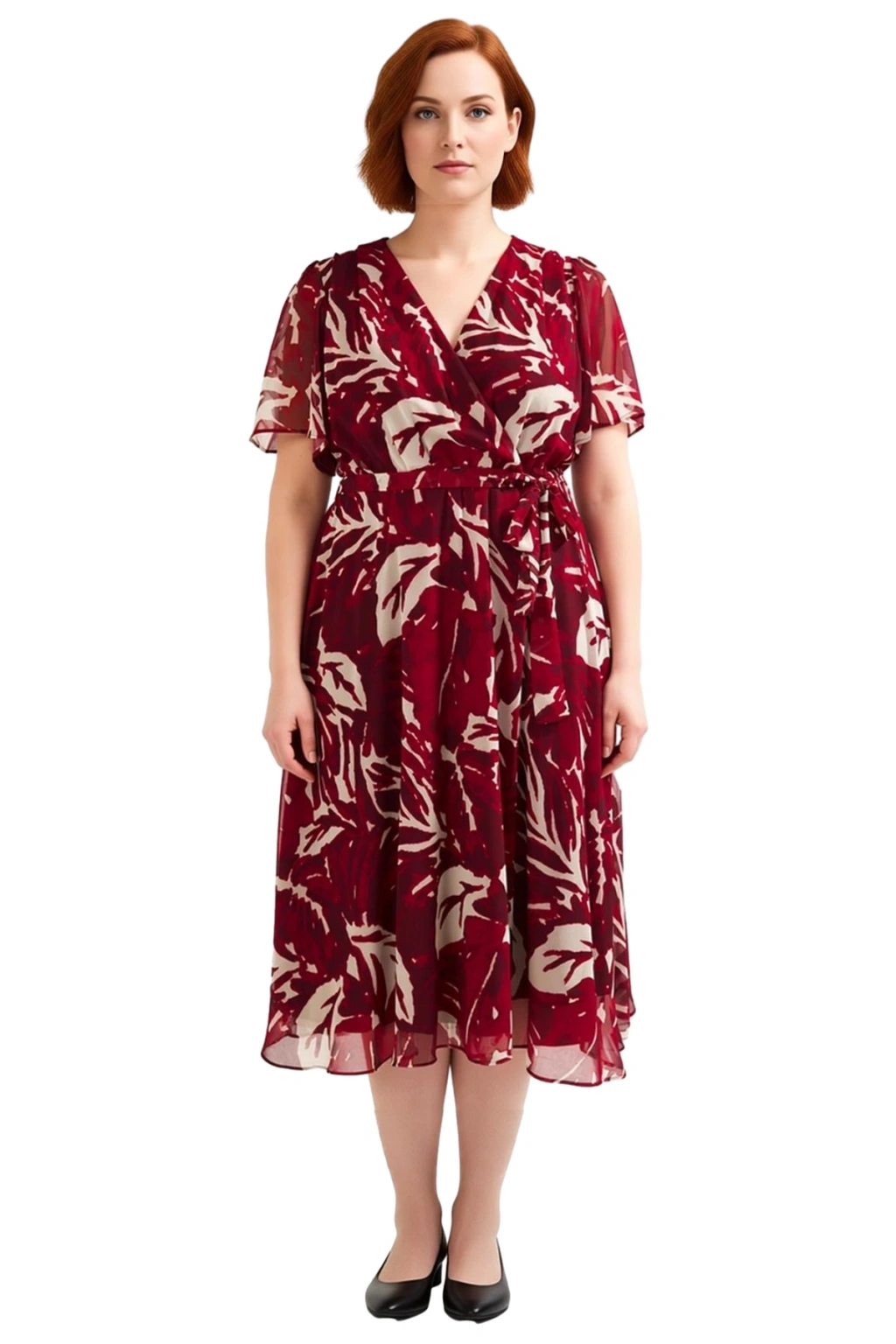 Ürün Özellikleri: A-line kalıp, 100% Polyester materyal, çiçekli desen, V yaka, melek kol, dokuma şifon kumaş, çok renkli, astarsız tasarım.