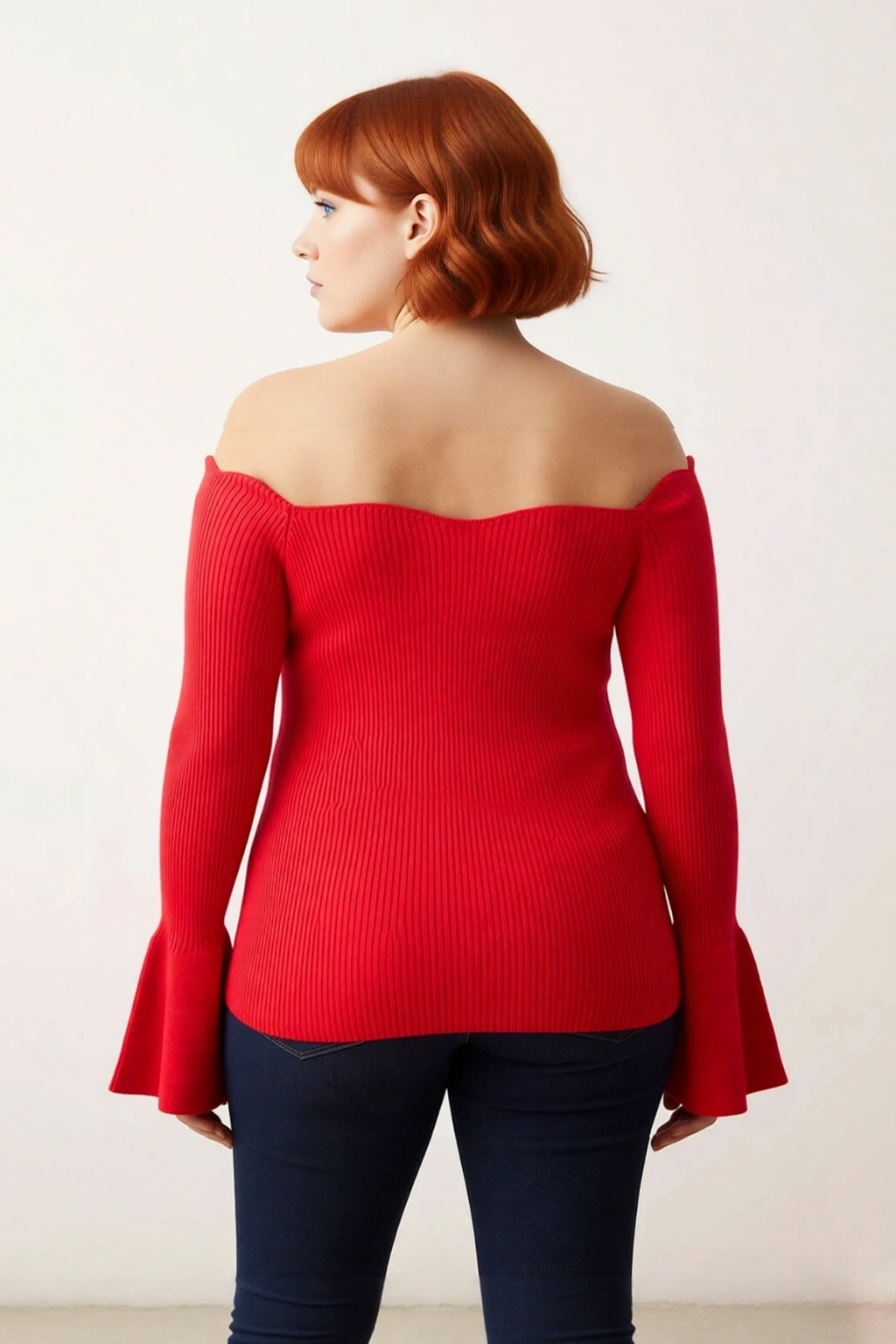 Ürün Özellikleri: Fitted kalıp, akrilik materyal, düz desen, carmen yaka, reglan kol, triko kumaş, kırmızı renk.