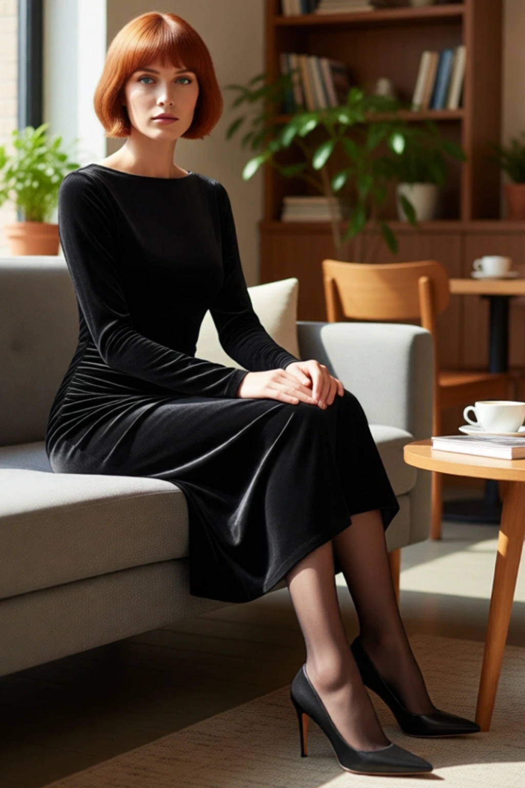 Kayık yaka tasarımı, modern ve çekici bir görünüm sağlarken, uzun standart kol yapısı soğuk havalarda ekstra koruma ve rahatlık sunar. Kadife dokuma tipi, elbisenin lüks hissini artırırken, astarsız oluşu hafif ve nefes alabilir bir yapıya sahip olmasını sağlar. Cepsiz ve kemersiz sade tasarımı, elbisenin ana hatlarını bozmadan şıklığı ön planda tutar. Esnek yapısı sayesinde gün boyu konforlu kullanım sunan bu elbise, T10 yıkama talimatı ile de bakımı kolaydır, böylece kalitesini uzun süre korur.